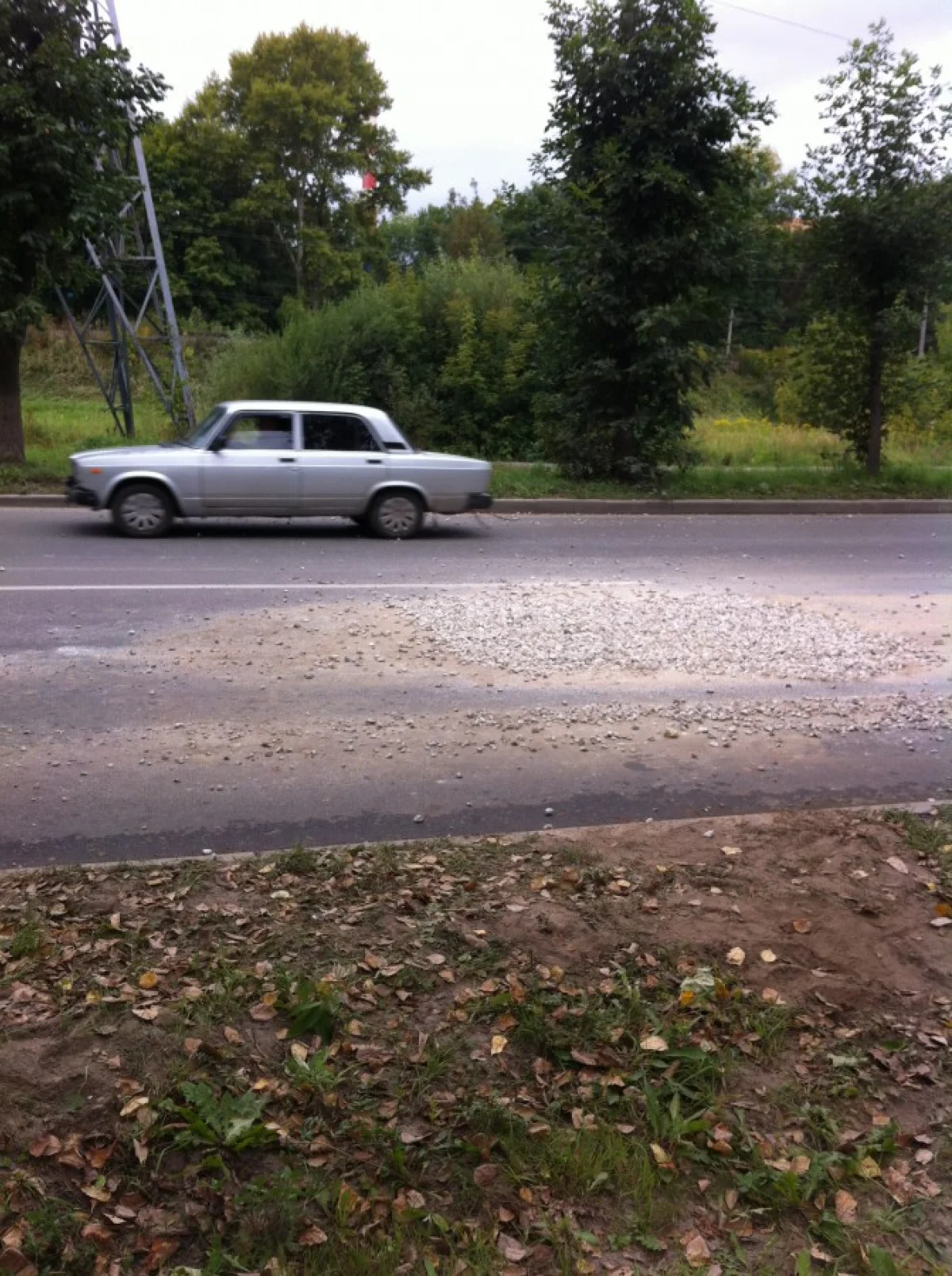 Здесь уже писал о плачущей дороге по Грабцевскому шоссе. Вчера это место разрыли. Что там делали не знаю. Но после себя яму засыпали щебнем. Теперь этот щебень со скоростью пули вылетает из-под колес!