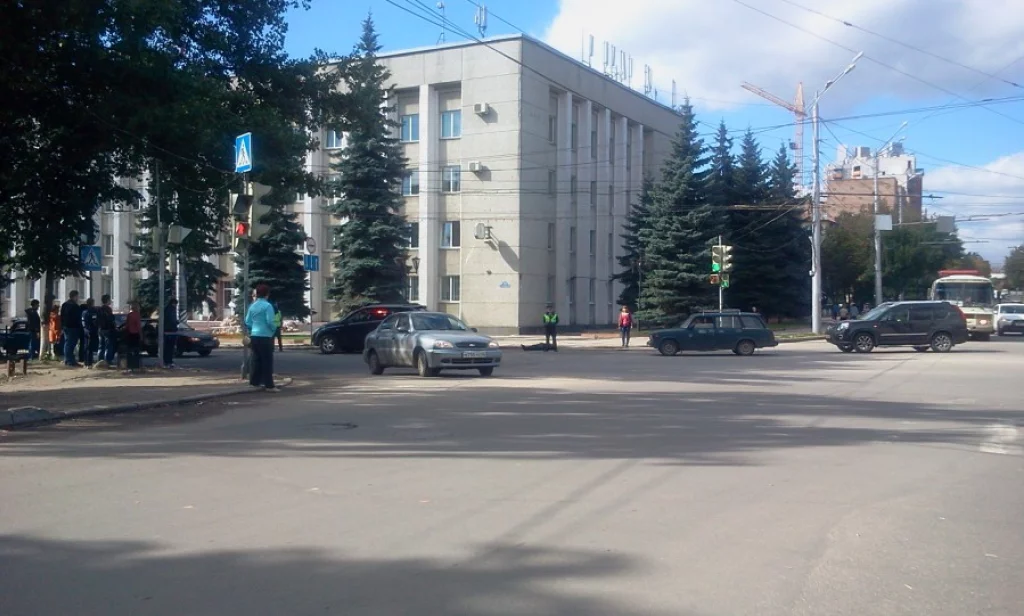 Точных данных у меня нет но по всей видимости при съезде с площади Московской на одноименную улицу ,был сбит мужчина. На фото около него стоит инспектор ДПС. Надеюсь без летального исхода