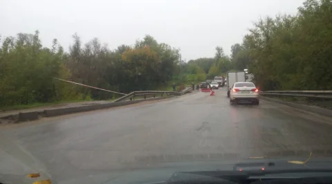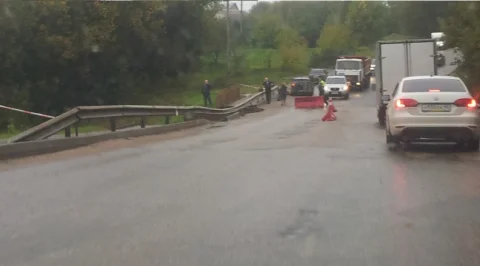 В районе улицы Киевки произошел обвал моста через одноименную речку. Обвал огорожен, движение контролируется сотрудниками ДПС.