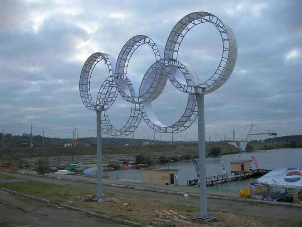 Пока население обсуждает символ, который складывается из официально представленного выбранного маршрута олимпийской эстафеты по проносу огня, без особенной помпезности производиться монтаж Колец на набережной Яченского водохранилища.