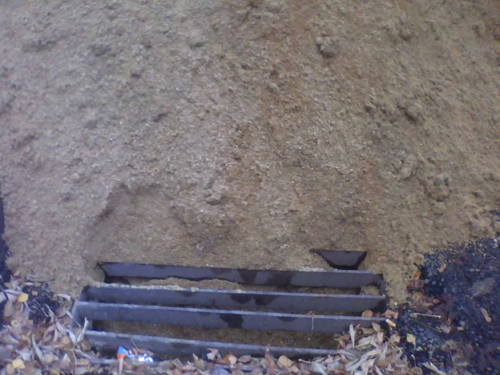 На ул. Московской г.Калуги в районе домов 182-184 был завезен песок для укладки тротуарной плитки. Многи видели идущий сейчас там ремонт. Вот песок аккуратно и выгрузили прямо в коллектор ливневой канализации. Сейчас доделают улицу, соберут технику и уедут. А потом горуправа будет просить фотографии, чтобы найти где-те там была когда-то ливневая канализация.
