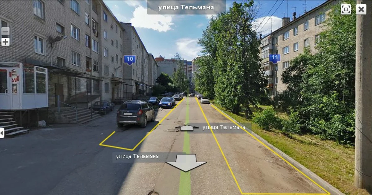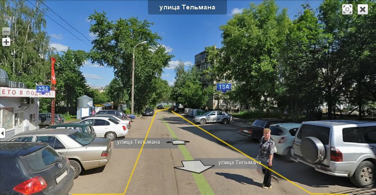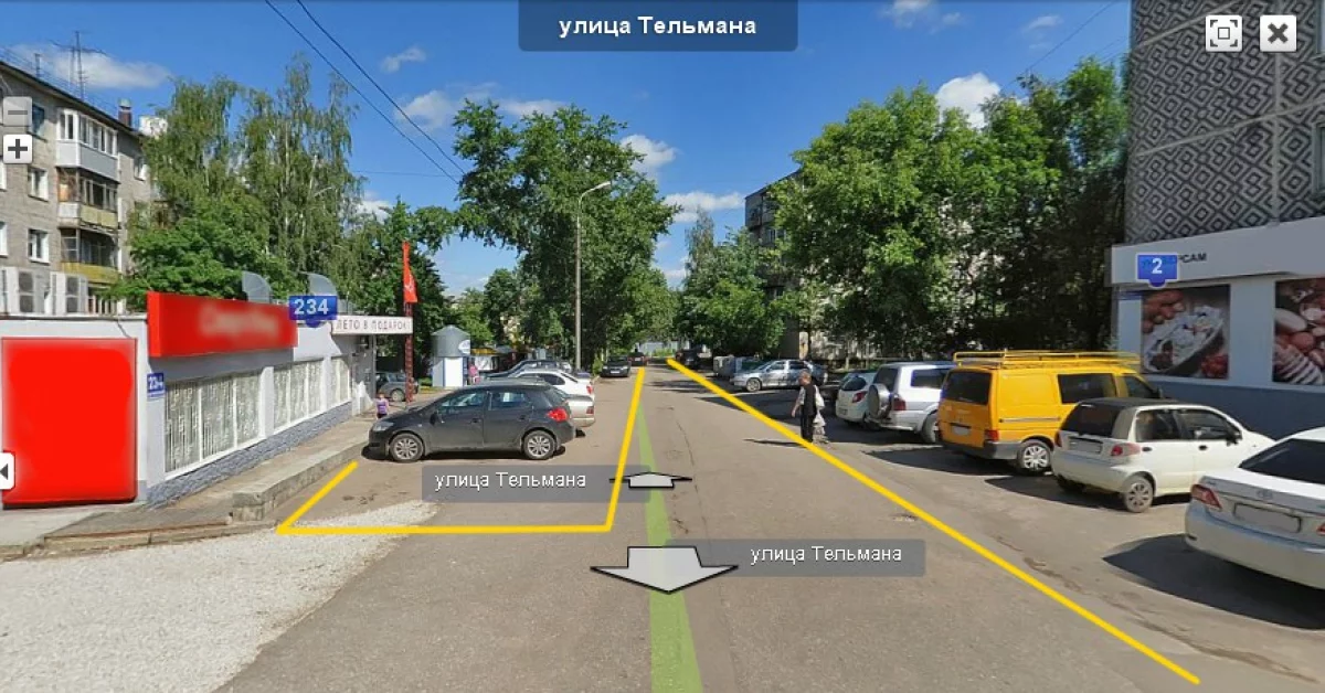 (Фото с Панорамы. Сделаны летом в середине рабочего дня. Но и так видно, что уже движение местами затруднено. Вечером забивается вся улица полностью. Там желтым отмечены места парковки.)