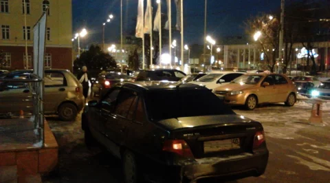 Обычный будний вечер рядом с одним из крупный торговых центров города Калуги. Периодически наблюдается беспорядочная парковка перед входом в ТЦ. Места на подземной парковке есть.