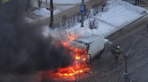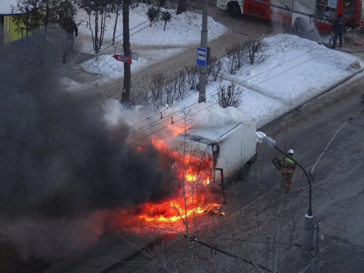 На ул. Труда около получаса назад возле остановки ОТ загорелась грузовая "Газель". Прибывшие пожарные уже потушили огонь и сейчас вместе с сотрудниками ГИБДД работают на месте происшествия.