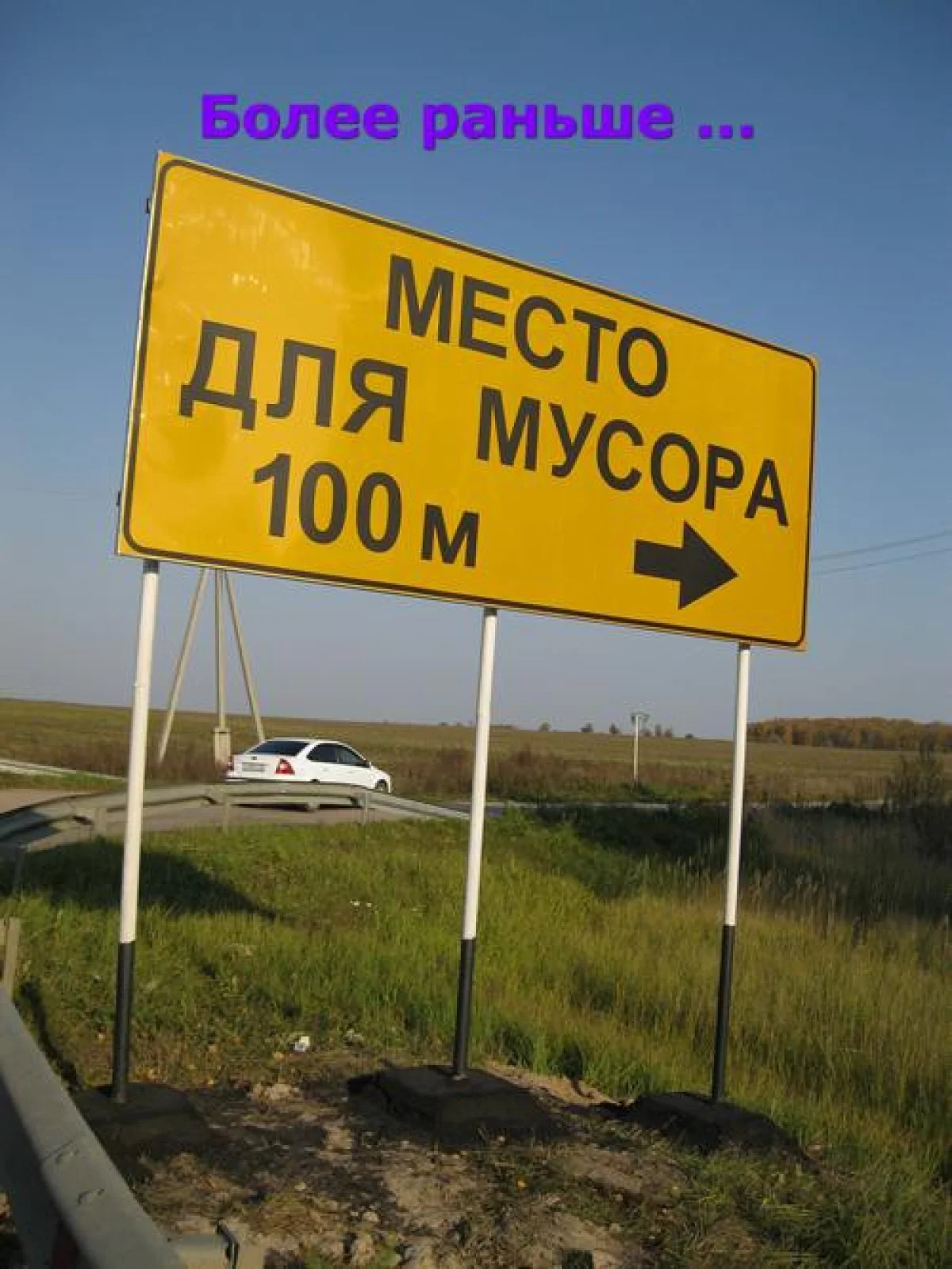 Либо, желая выбросить мусор, но заметив, что там нет контейнеров, будут вынуждены (даже изначально этого, возможно, и не желая) выбрасывать его на ходу на обочину автодороги. Хотя, для очень-очень многих, второй вариант и ранее был предпочтительнее, даже когда "Место для мусора" ещё полноценно функционировало ...