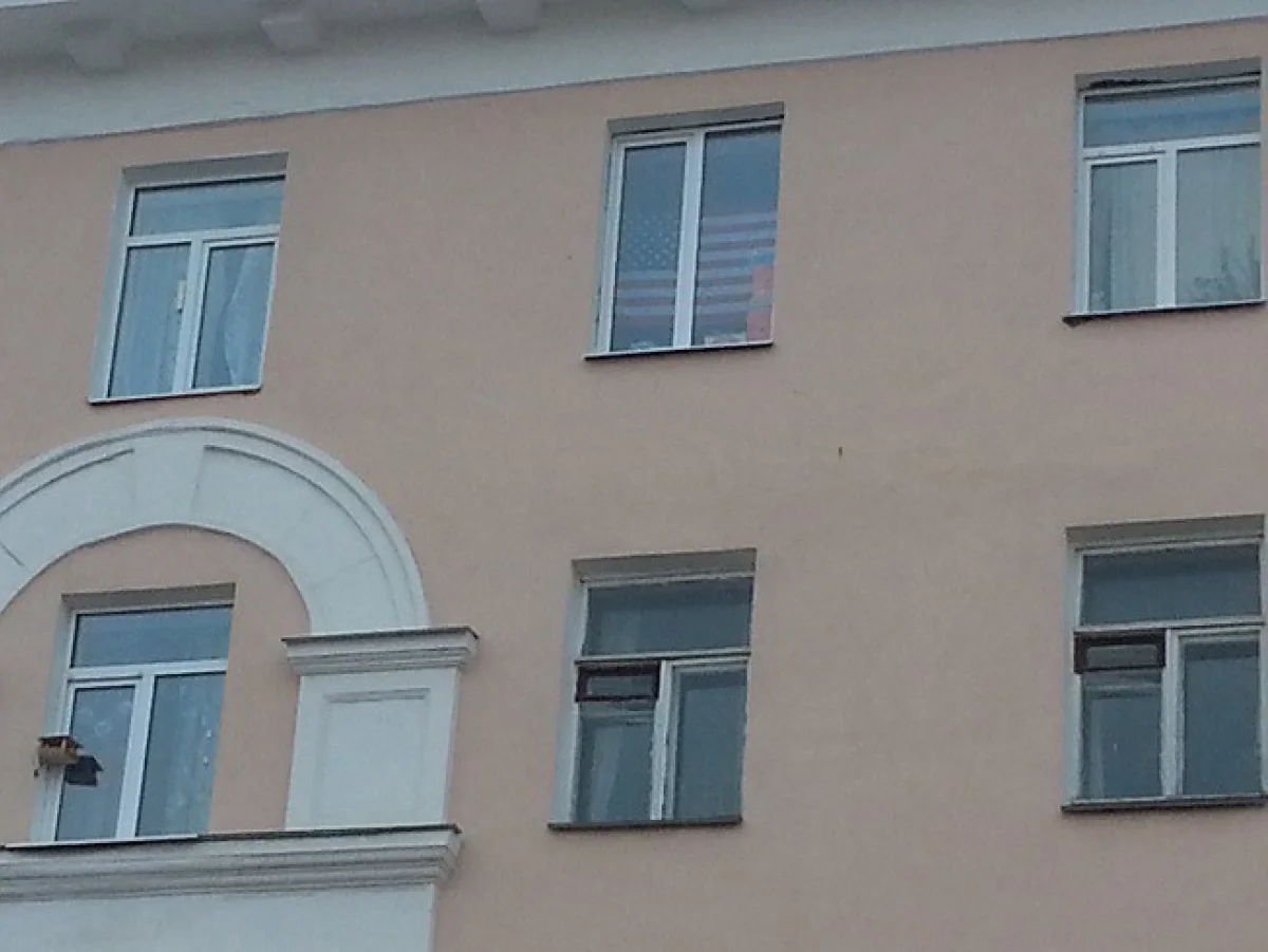 Гуляя по центру города, мой взор пал на одно из окон на Театральной площади. И вы спросите, что же я там увидел? Специально для вас я это сфотографировал.(см.фото.)