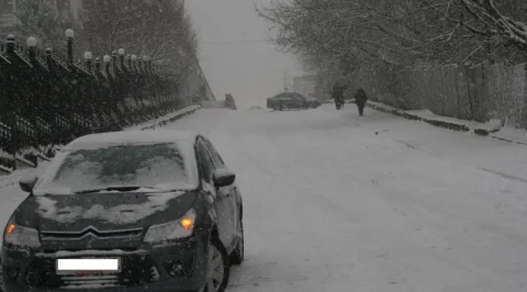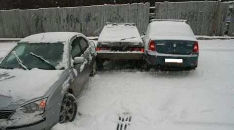фото 1: Припаркованный ситроен был подбит пролетавшим вниз фордом, тем временем вверху добрый человек решил перегородить опасный участок