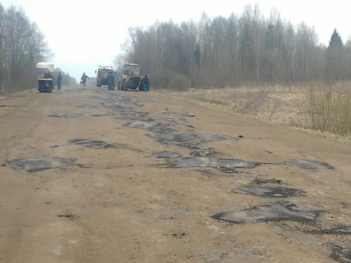 В славном городе Мосальске ,точнее на выезде из города в сторону Мещовска. Производят ремонт практически на грунтовой дороге. Понятное дело- с использованием нанослоя асфальта,и конечно же не забывая этот слой притоптать ботинком( наверно что бы к колесу не приклеился).