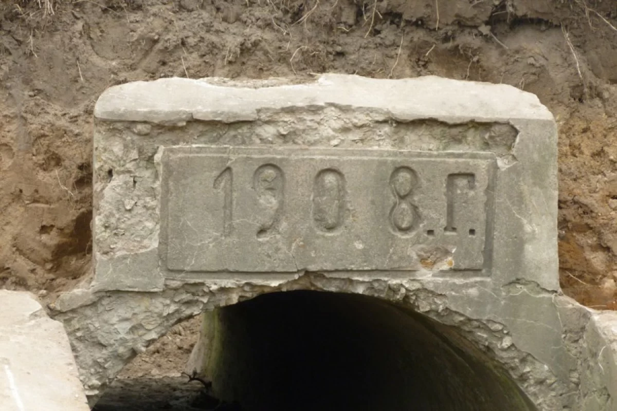 А совсем недавно начались работы на дороге в Суворов. Там начали окапывать склон оврага и... ОТКОПАЛИ вот такое сооружение 1908 года постройки. Как оказалось, что многие десятилетия это сооружение было засыпано и пребывало в забвении дорожников - сие тайна великая есть. Хорошо, что откопали и это сооружение вновь будет служить людям.
