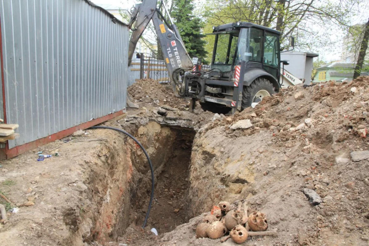 Сегодня были приостановлены работы в самом начале улицы им. С.-Щедрина. Очень возможно, что строители будущего минирынка вскрыли захоронения кладбища при Спасо-Слободском храме.