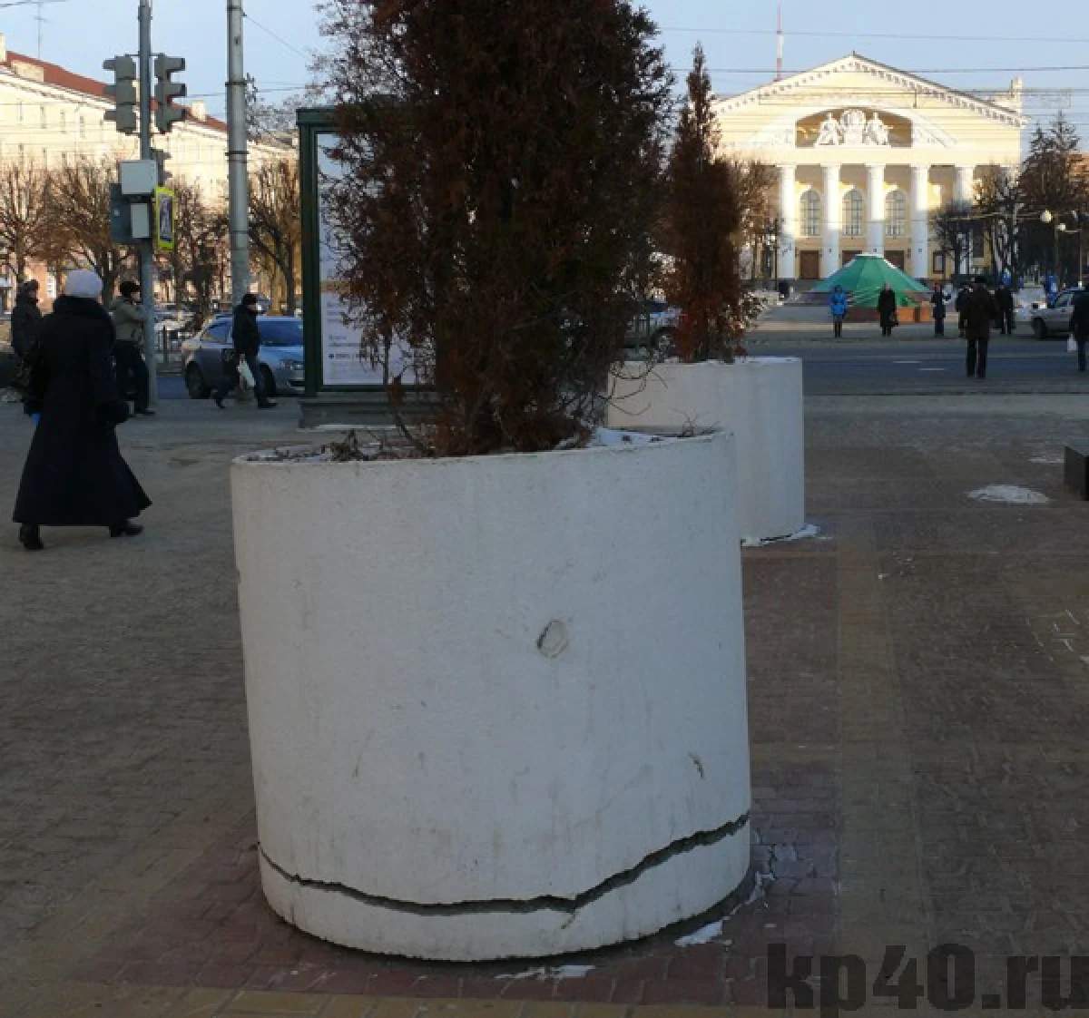 Напомню, что информационные табло лишь то немногое, что исчезло с улиц нашего города, не успев принести радости калужанам. Это и клумбы возле Сбербанка на Кирова (фото 2), и ж/б кольца с туями на Театральной (фото3), и композиция "Ёлочка", занятая "Калужской мумией с факелом", и. т.д, и т.п.