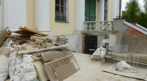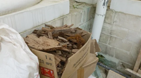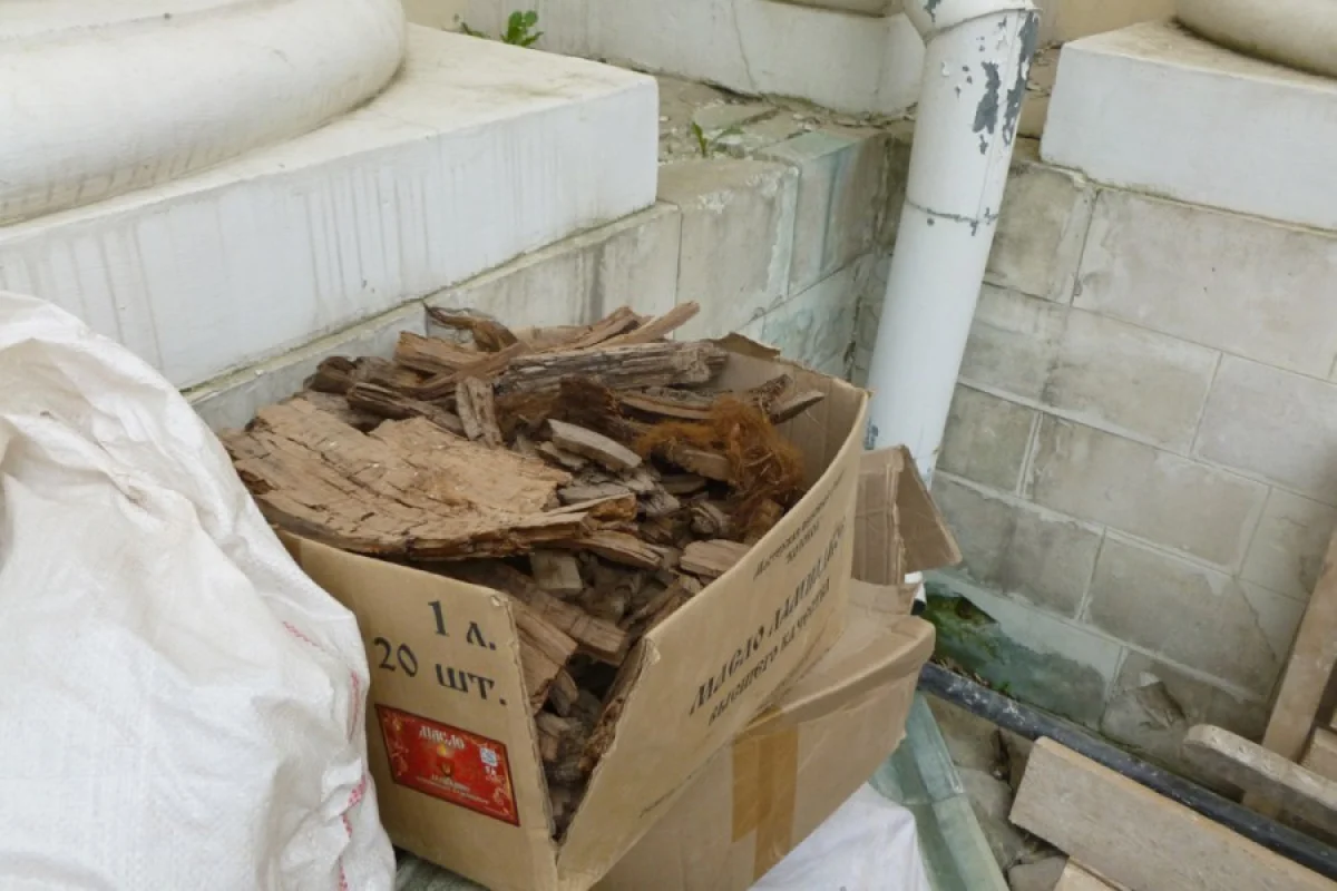 То, что в подвале собора ведутся работы и то, что там найдено и вынесено наверх много мусора и трухлявого дерева, хорошо видно на приведённых снимках.