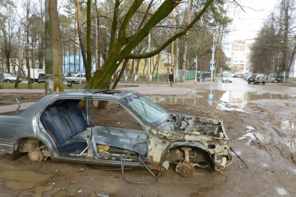 Сей колоритный "агрегат" стоит аккурат напротив городского УВД и ГИБДД-ГАИ, что на улице Телевизионной. Давно стоит. Стоял и в марте, и в апреле, и в мае стоит. Одна бабка мне сказала, что ещё раньше, сей разукомплектованный автомобиль, "стоял и мозолил глаза милицейскому руководству, аккурат, под их окнами". Вот и и приказало, якобы, высокое полицейское начальство убрать "с глаз долой". А у подчинённых хватило смекалки только на то, что бы перетащить "железяку" на противоположную сторону улицы. Правда это или нет, а только эта "железяка" теперь уже, минимум, третий месяц, гордо ржавеет прямо напротив нашей доблестной городской полиции.