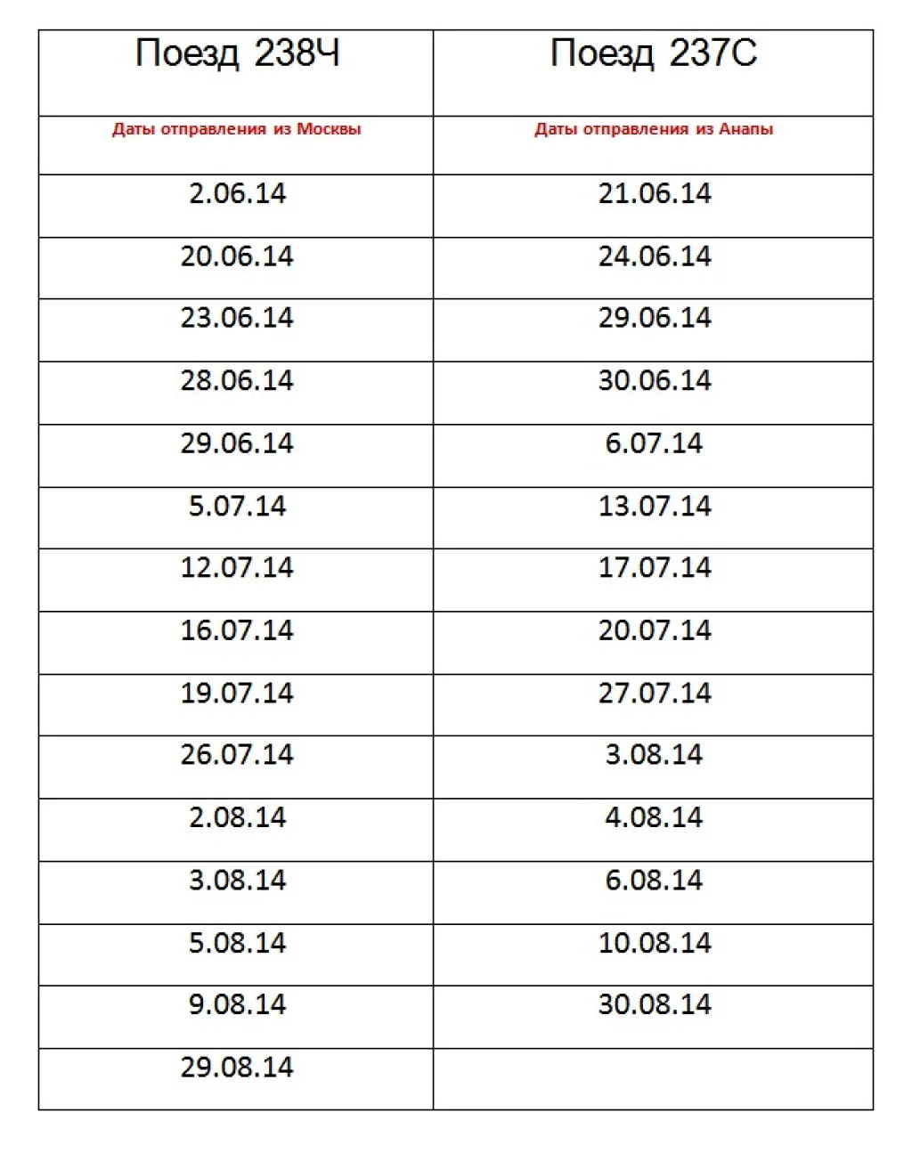 Я как-то писал заметку про поезда Москва-Анапа (Анапа-Москва) проходящие через ст. Калуга-1. В связи с обстановкой на Украине, поезда, сформированные Федеральной пассажирской компанией (ФПК - «дочка» РЖД), с 1 июня, возможно, перестанут курсировать в Крым через территорию Украины. Теперь на полуостров можно попасть по схеме : Поезд до Анапы (Краснодара) - Автобус до порта - Паром "Материк- Полуостров"-Автобус до городов полуострова. Для этого АНО «Единая Транспортная Дирекция» разработала единый билет со специальной тарифной ставкой, который можно приобрести в кассах РЖД при оформлении билета на поезд дальнего следования. Цены и подробности можно посмотреть тут: http://pass.rzd.ru/static/public/ru?STRUCTURE_ID=5282. Расписание доставки по системе «единый билет» из Краснодара и Анапы в города-курорты Крыма и обратно, вот тут: http://tdog2014.com/%D0%BF%D1%80%D0%BE%D0%B5%D0%BA%D1%82%D1%8B/%D1%82%D1%80%D0%B0%D0%BD%D1%81%D0%BF%D0%BE%D1%80%D1%82-%D0%BA%D1%80%D1%8B%D0%BC%D0%B0/%D0%B5%D0%B4%D0%B8%D0%BD%D1%8B%D0%B9-%D0%B1%D0%B8%D0%BB%D0%B5%D1%82/. Я же в свою очередь, выкладываю дни отправления поездов "Москва-Анапа" - "Анапа-Москва" с проходом через станцию Калуга - 1, для поездки с минимальным количеством пересадок. Учтите, на полуострове Крым введено МОСКОВСКОЕ время. Может кому пригодится информация.