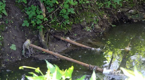 3. В воде «речки» видны конструкций, которые очень похожи на оголившиеся электрокабели.
