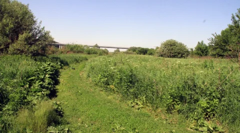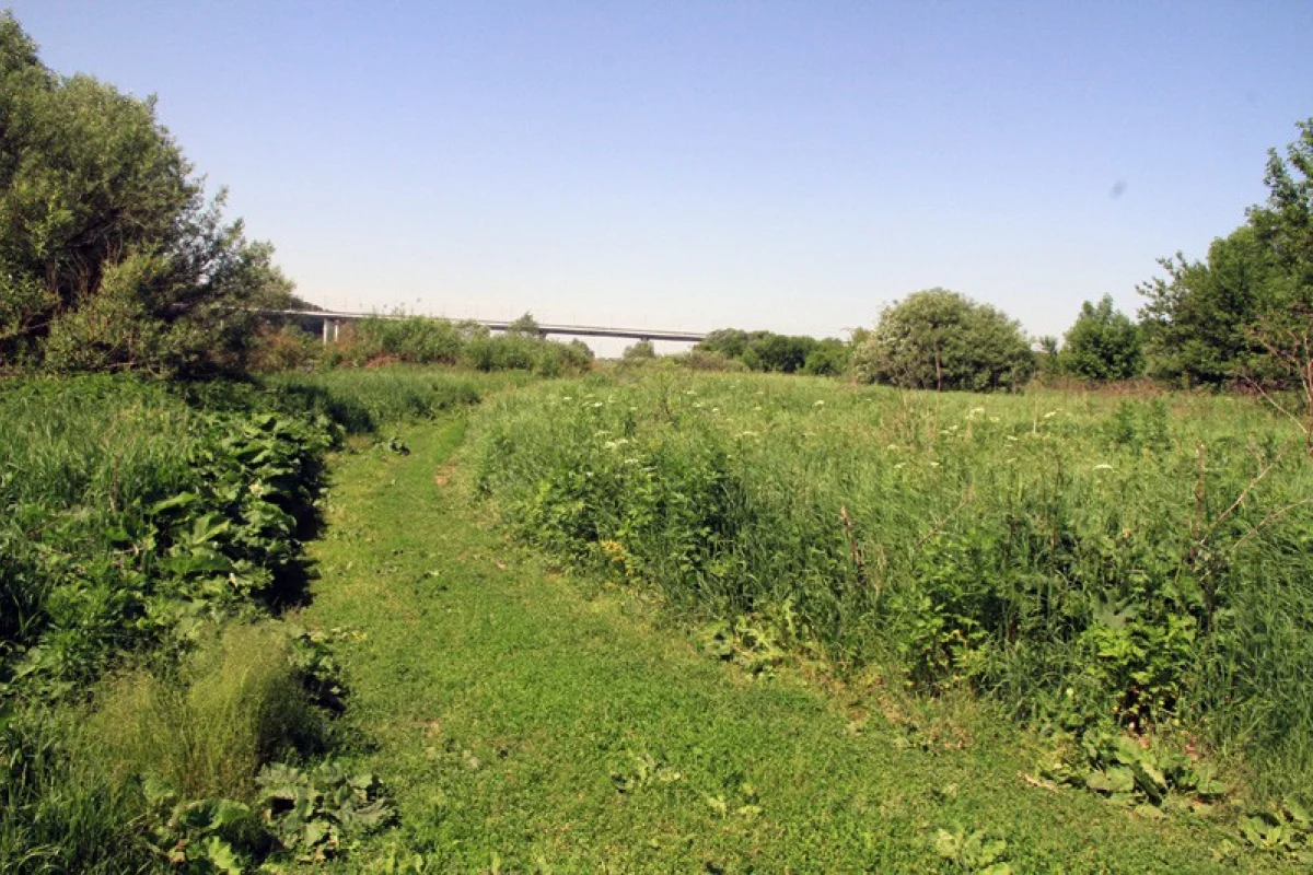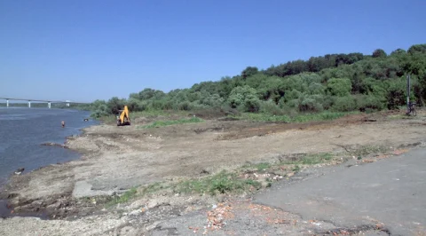 3. Здесь будет новое «место отдыха у воды». Каменистый берег с вырубленным огромным количеством кустарника. Хорошо видно, что по выкорчеванному месту течёт вода. Скорее всего, это «проявилась» речка Городенка (бывший мощный Воробьёвски крупец), которую приказали засыпать при строительстве Обкома КПСС. Как гласит поговорку, вода дырочку найдёт. Вот она тогда и нашла – весь берег был заболочен.