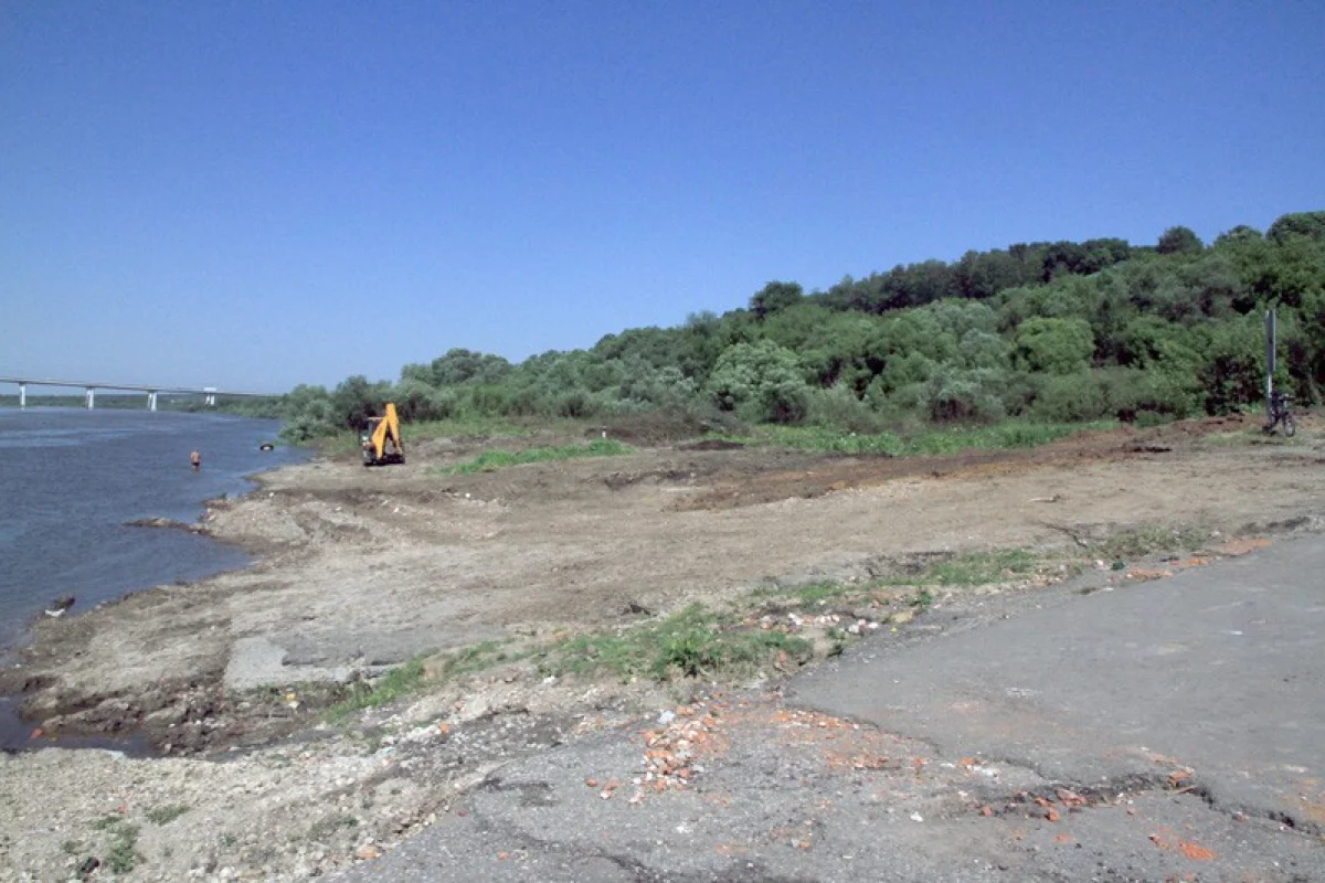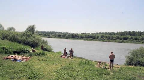 1.Люди отдыхают на месте старого городского пляжа. Место, в основном, чистое, покрыто травой. Вход в воду, если кто сам решит окунуться, пологий суглинок и песок. Течения почти нет.