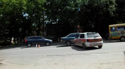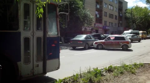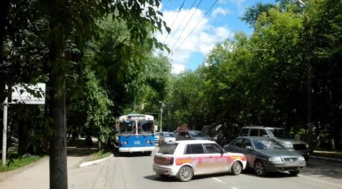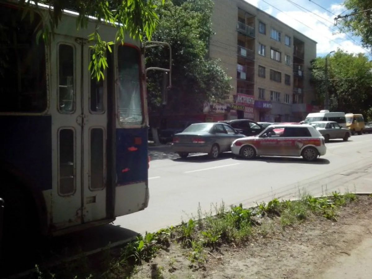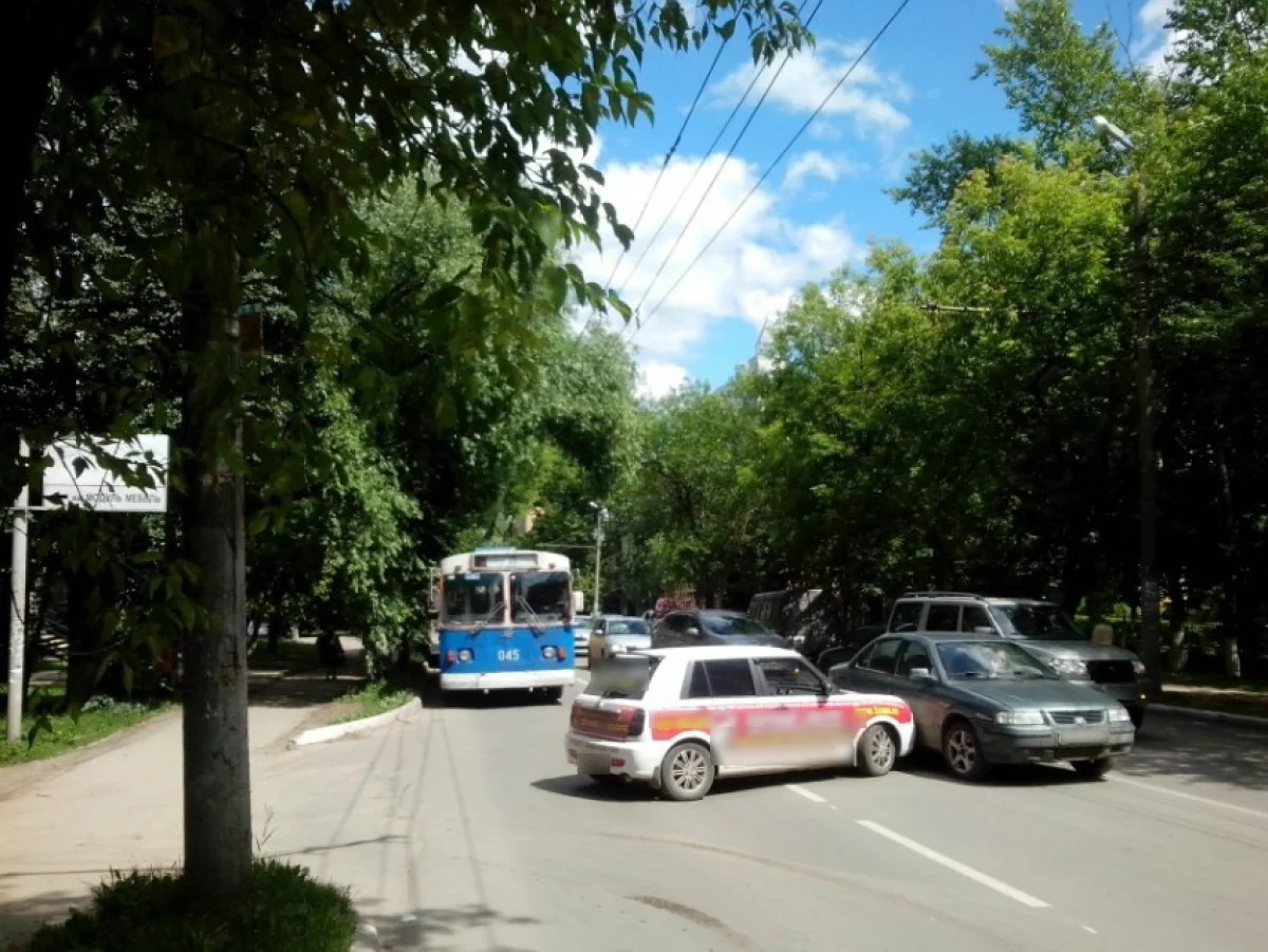 Иномарка светлого цвета с характерной маркировкой, выезжала из двора дома #9 и собиралась выполнить левый поворот. Результат - см. на фото. Благо, долго не стояли, но троллейбусный график всё же сорвали...