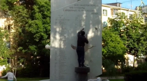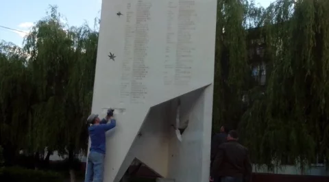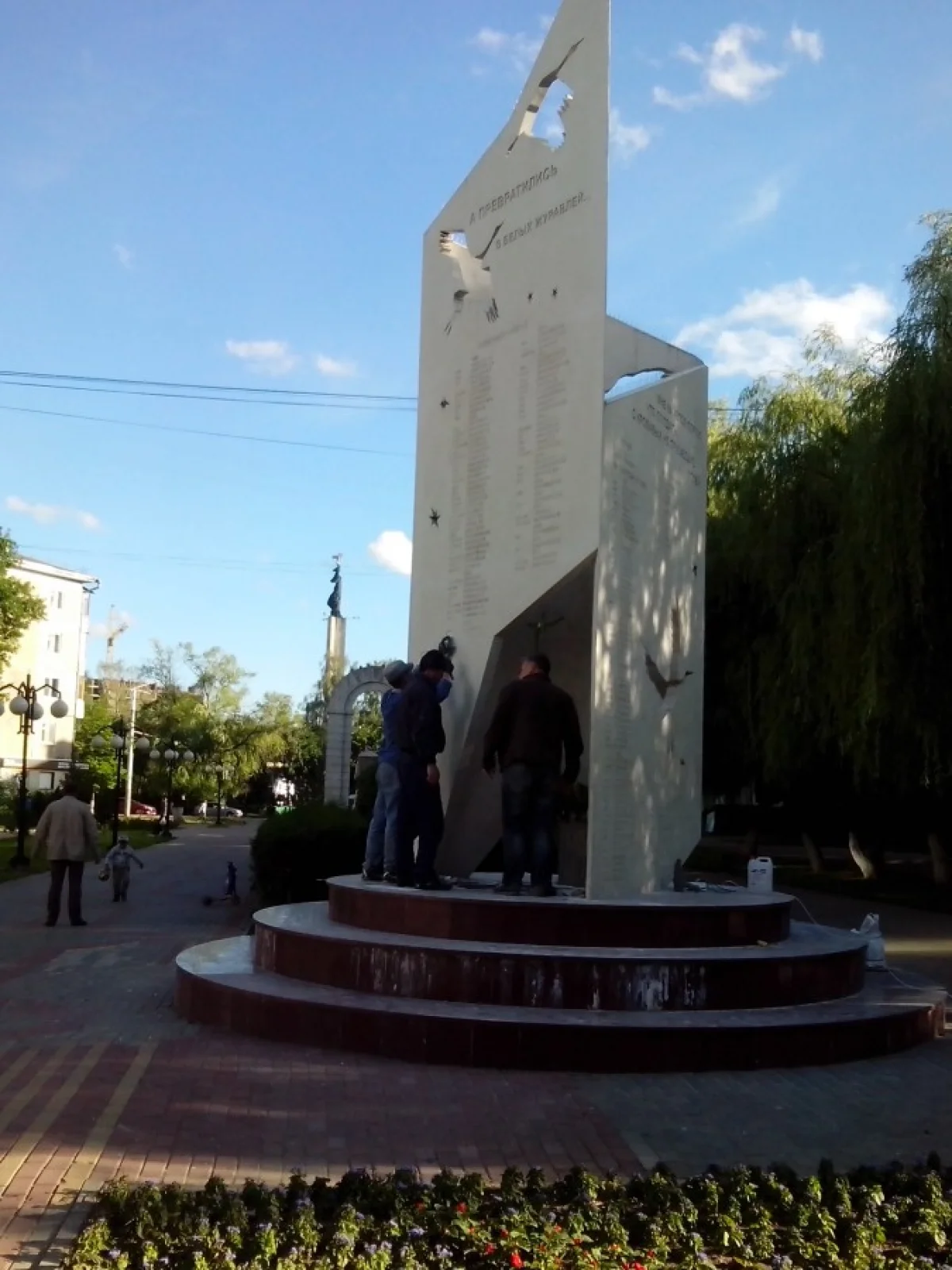 Недавно открывшийся монумент "Журавли" в память о калужанах, погибших в локальных конфликтах, сегодня вечером немного ремонтировали и обновляли ему внешний вид (?!), а, главное, "дописывали" "новые" фамилии. Увы, список на сторонах монумента должен увеличиться на целых пять строк-имён. За последнее время 2 калужанина погибли в конфликтах на Сев.Кавказе, а ещё 3 фамилии вернули из небытия, покопавшись в архивах (к примеру, касательно наших потерь в Эфиопии несколько десятков лет назад).