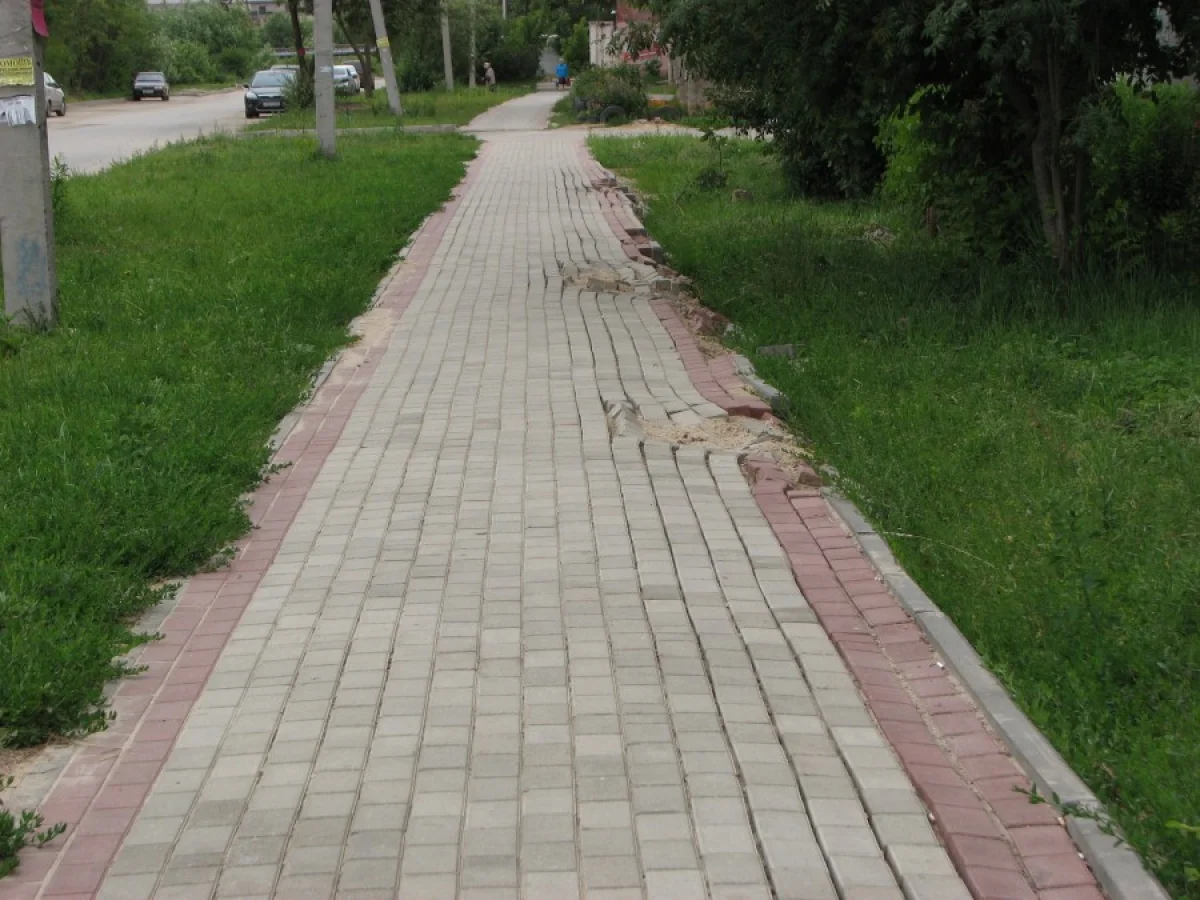 *правда, должен заметить, что этот тротуар зимой убирали с помощью техники - мини-трактора - может, потому и не выдержал?..