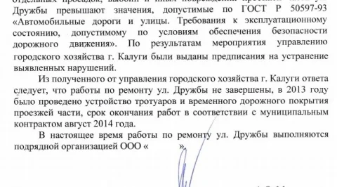 (в заглавном фото к новости - часть присланного ответа, имеющая непосредственное отношение к ул.Дружбы)