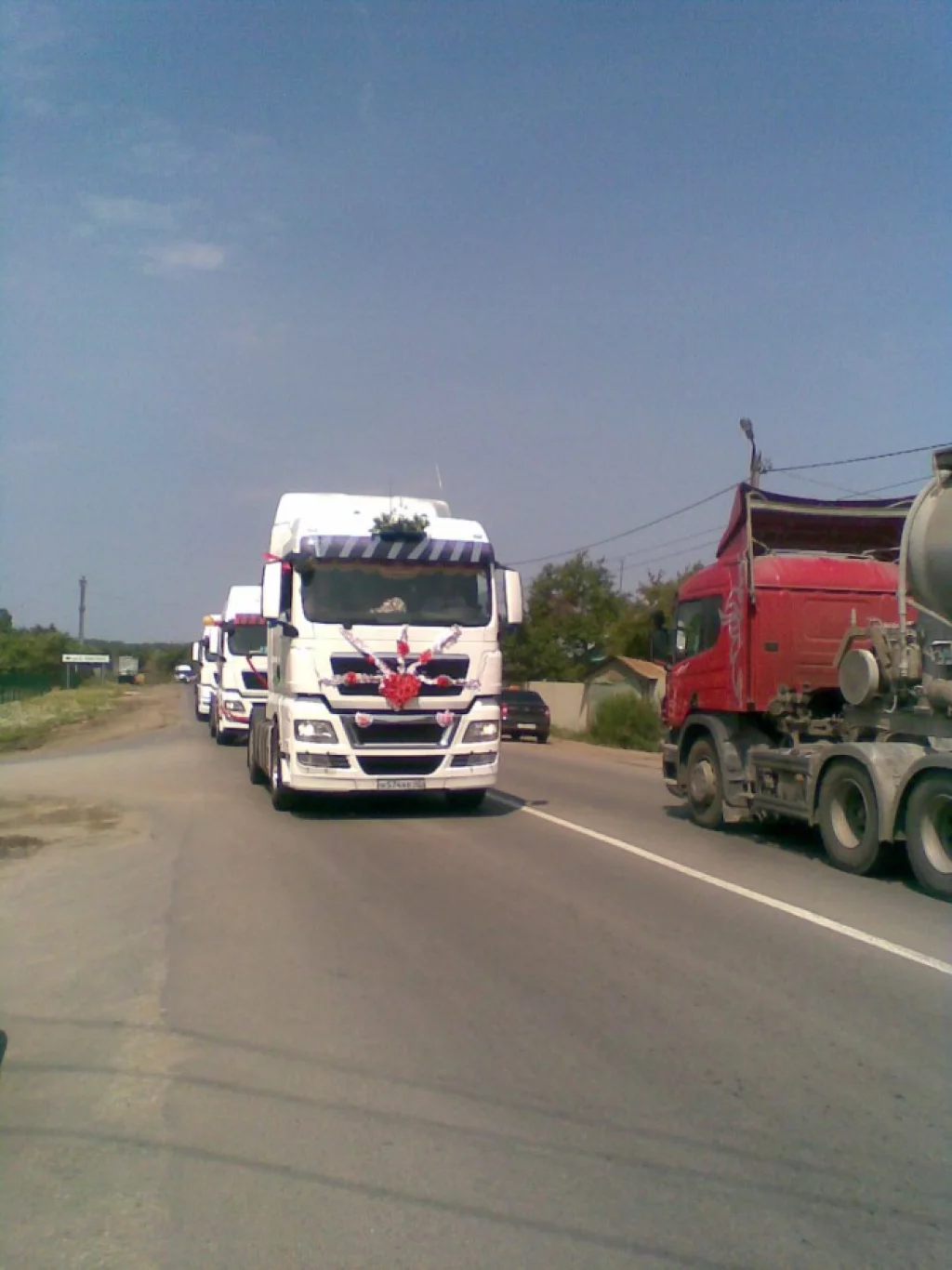 Вот такой очень необычный свадебный кортеж видел в субботу в Калуге. Авторы и исполнители идеи молодцы, водители и пешеходы приветствовали кортеж из МАНов овациями:)