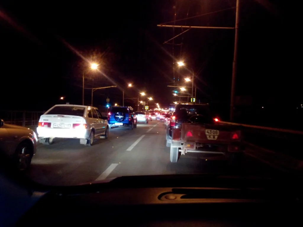 Второй вечер подряд попадаем в засаду. Пробка на левую сторону Калуги стоит по 30-40 минут. Независимо от времени, хвост растягивается приличный. Вчера поворачивали в 21:45 с ул. Генерала Попова уже в пробку, думали ерунда, пронесёт. Итог - 45 минут ехали до моста. Сегодня "догнали" пробку возле АЗС. Тащимся.