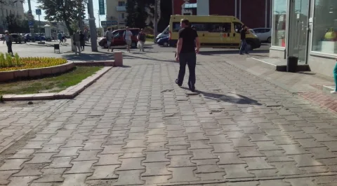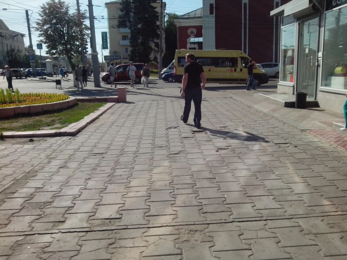 Самый центр Калуги. Выложенный плиткой тротуар у Дома Быта - весь "щербатый", в выбоинах. И "укропы" тут ни при чём! Преодолевать "полосу препятствия" пешеходам приходится по иной причине. Но это сути не меняет. Подвернуть ногу или потерять каблук - проще пустяка!