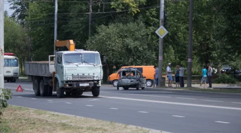 На северном около 13:00 произошло ДТП,с участием КАМАЗа и Лады Ларгус.Водитель Ларгуса поворачивал в сторону Канищево,а камазист его "догнал".