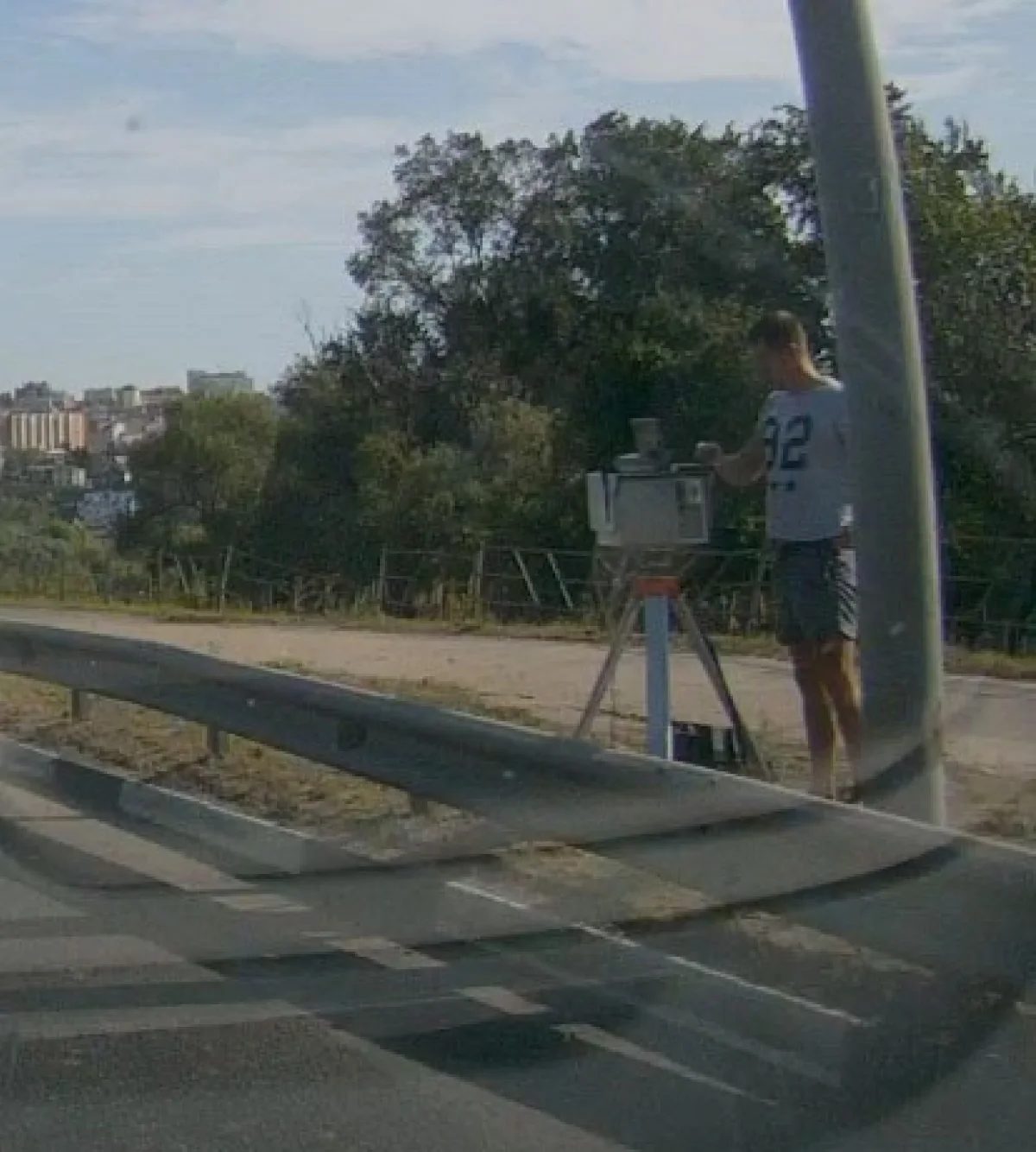 За неделю уже второй раз наблюдаю иномарку черного цвета с номером 400 (буквы не запомнил) рядом с въездом на "Гагаринский мост" и молодого человека в "гражданке", устанавливающего "треногу".