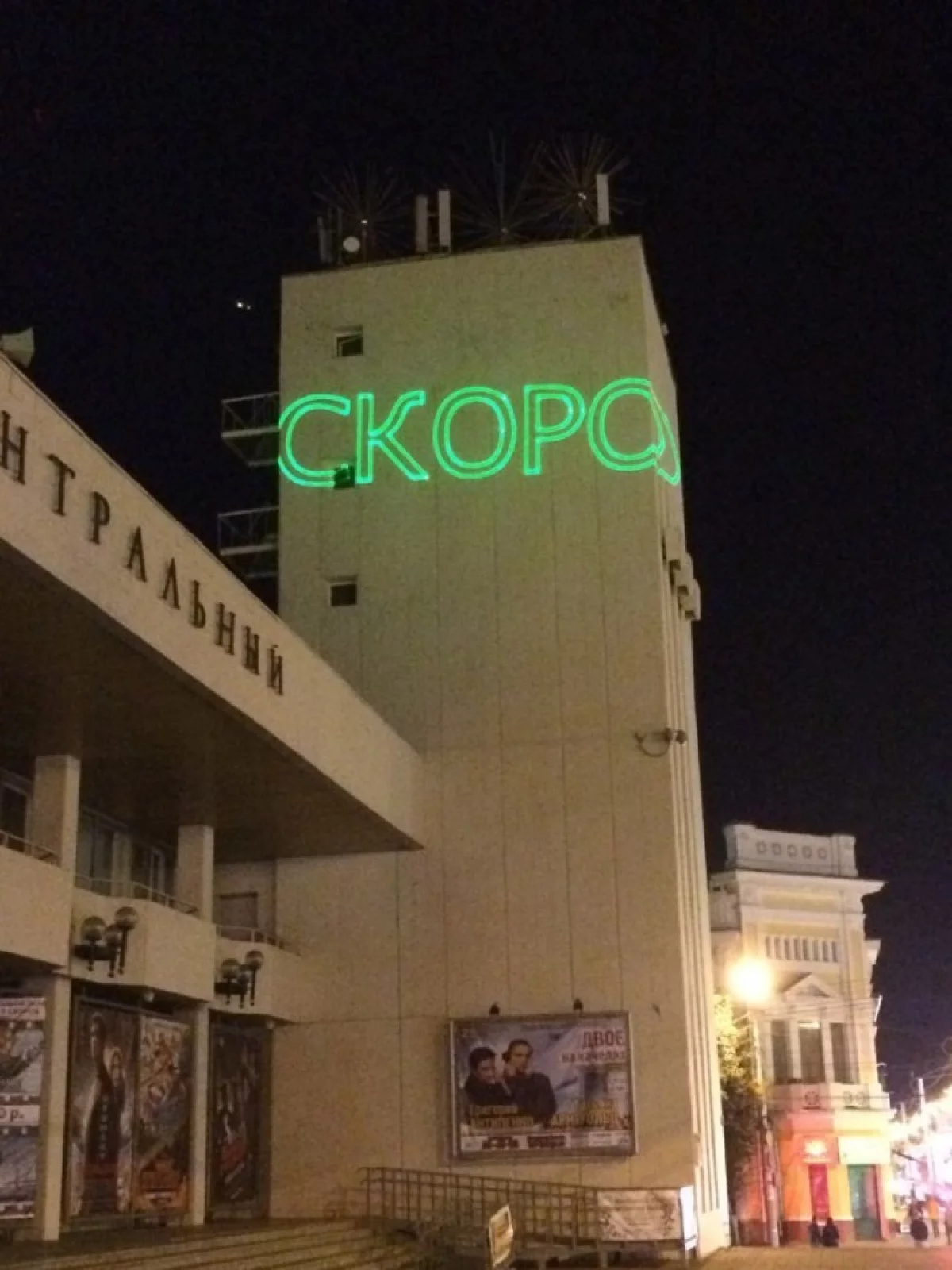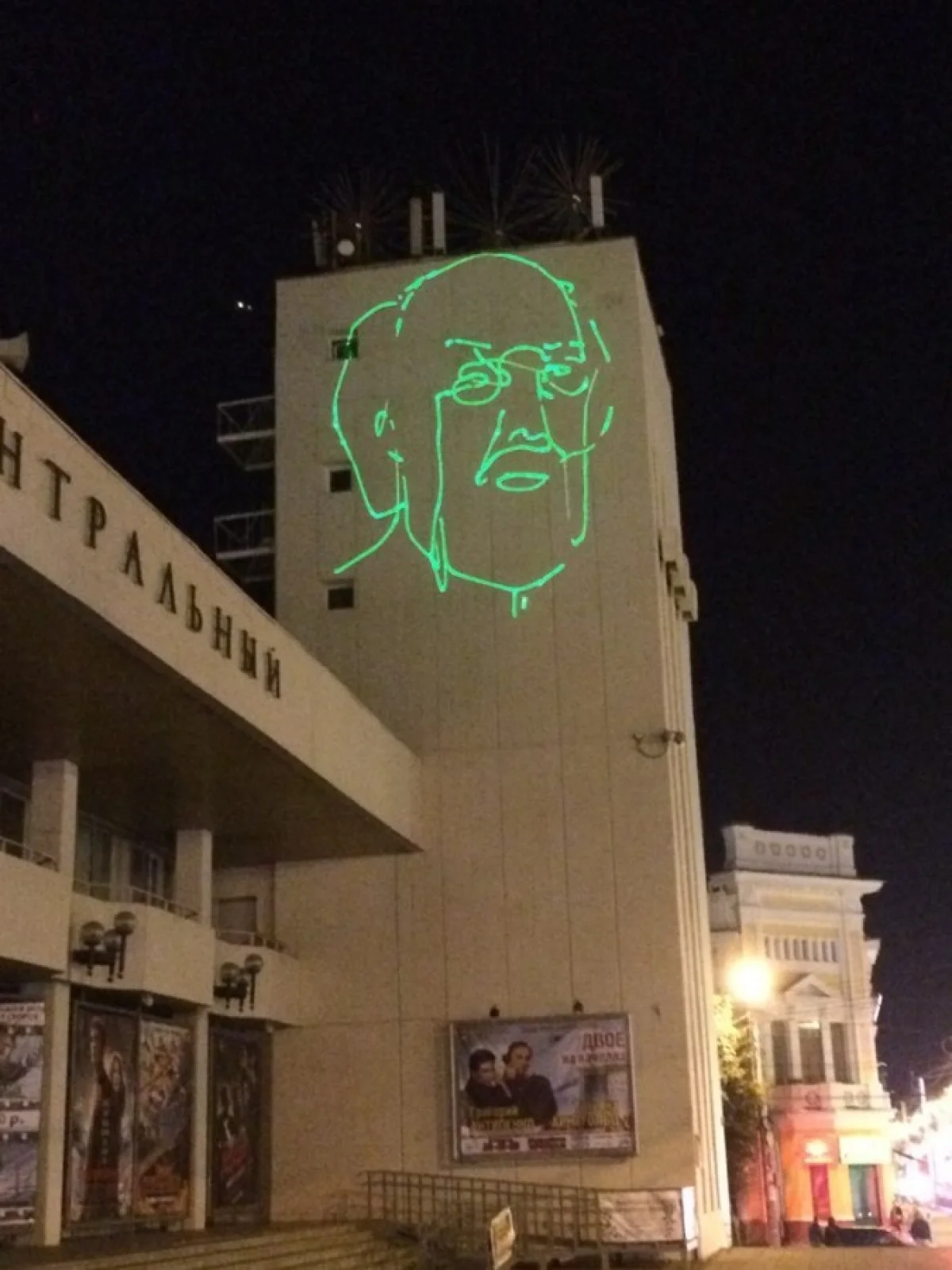 Вчера поздно вечером люди, идущие по улице Кирова в районе кинотеатра "Центральный", могли видеть лазерные инсталляции: Циолковский, Гагарин, ракета, известный в Калуге как "шарик" памятник 600-летию города. Но самое интересное - слово "СКОРО". Зрелище загадочное! Что будет "СКОРО" остается только догадываться. Может, о Дне города шла речь?