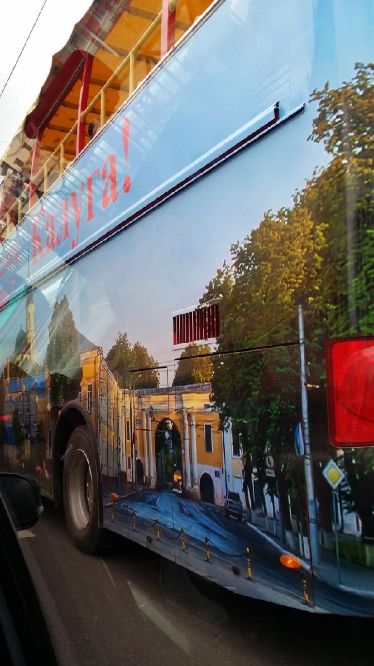 Вчера прокатилась на кабриолете-автобусе, нам впервые за время пребывания его в Калуге открыли крышу, и мы смогли насладиться всем видом центральной Калуги.