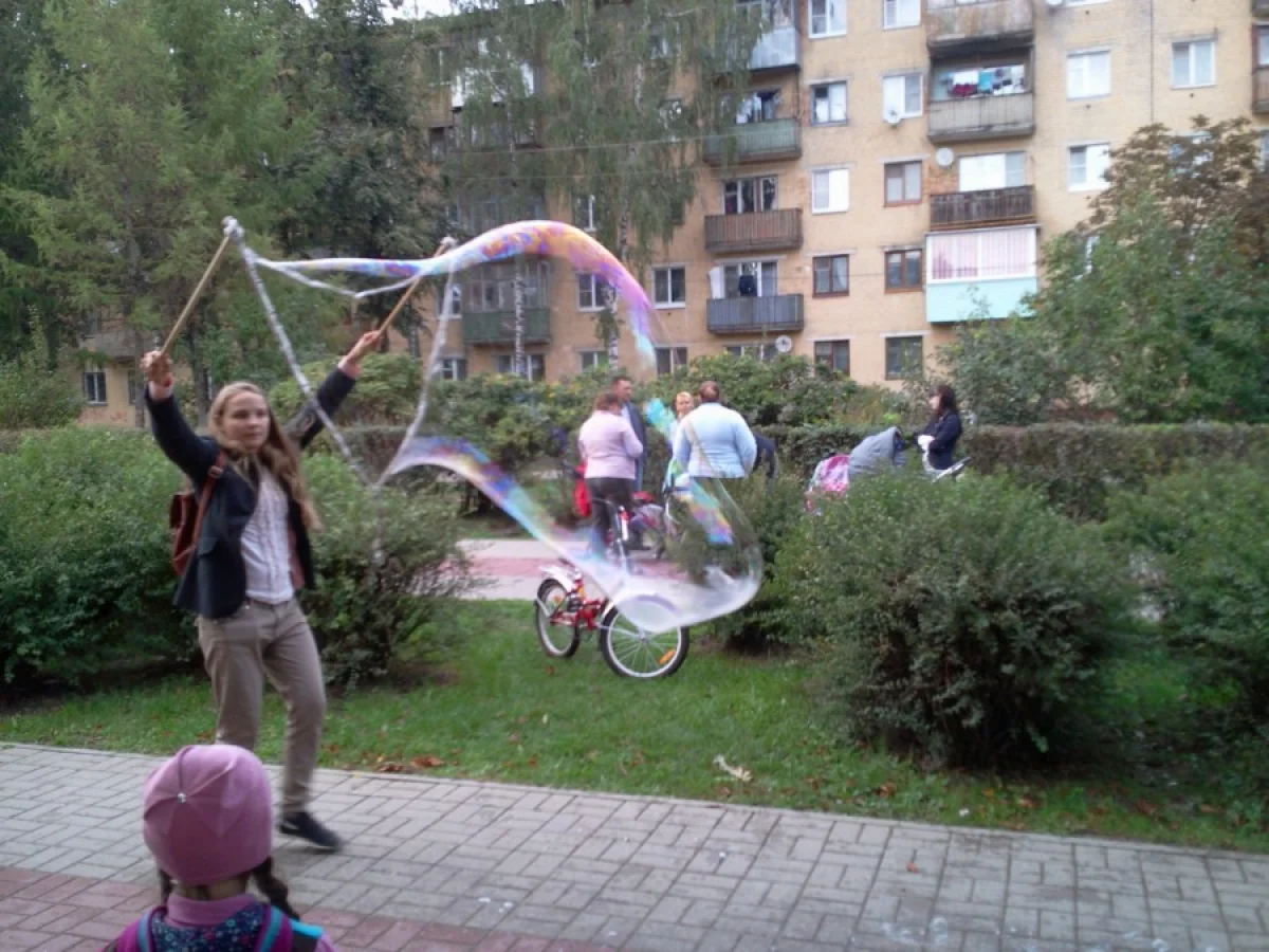 Вчера в скверике им. Жукова прошел мини аттракцион для "малявок" )))). молодая пара с ребенком ( сделаем вид ,что я их не знаю ) принесла с собой не хитрое приспособление и ОЧЕНЬ долго развлекала детей надуванием воздушных шаров . Визга радости хватит наверное на пол года ))). Всем детишкам хотелось попробовать сотворить шарик по больше и очередь из нетерпеливых непосед была приличная ))).