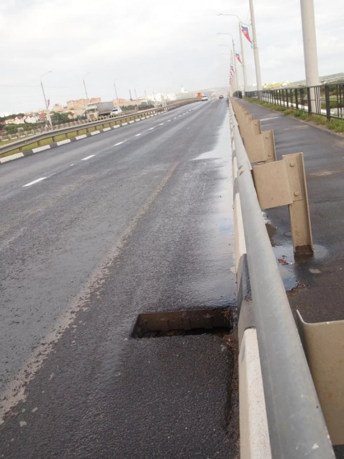 Я понимаю, что волнует в Областной Столице это только меня и ещё немногих людей, однако представьте как это разволнует народонаселение если в эту дыру провалится скутерист или велосипедист и выпадет на дорогу, а сзади будет катить перегруженный самосвал с песком или бетонными сваями... И, как обращали внимание коллеги немного ранее, по Дамбе же, помимо обычных водителей, перемещаются и Vip-персоны, например...