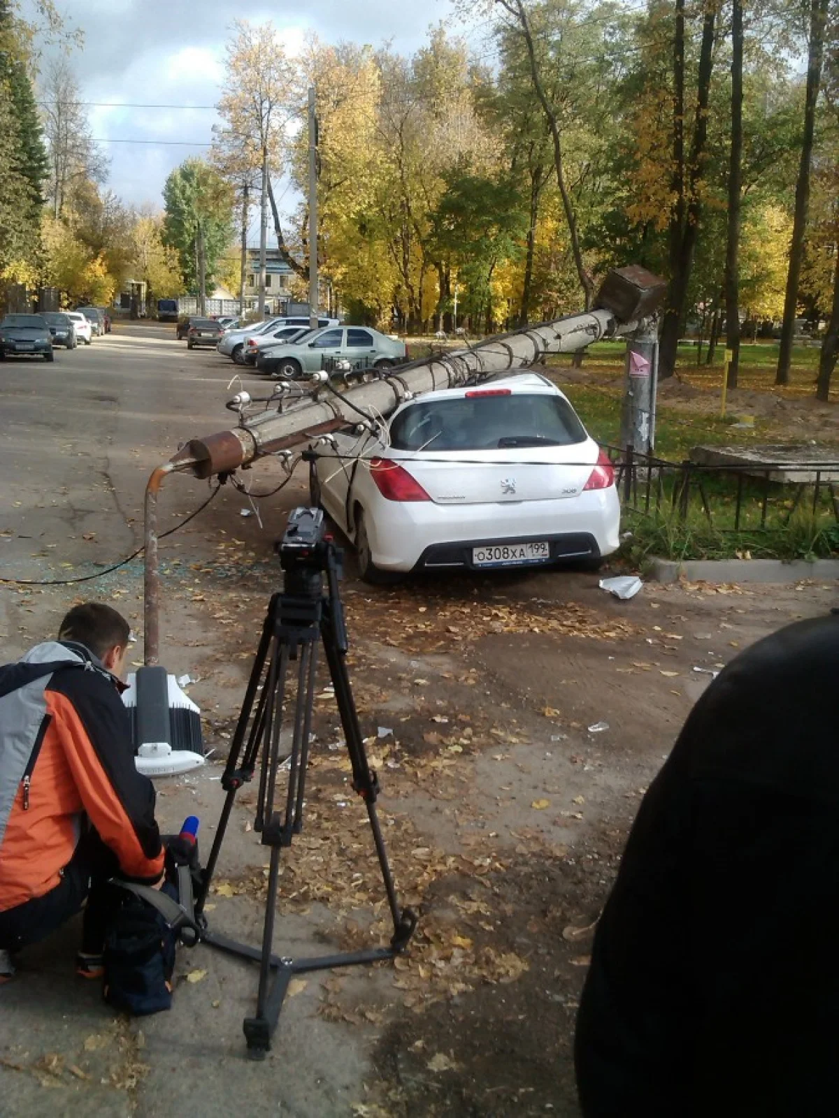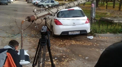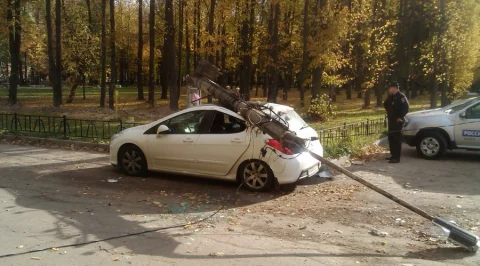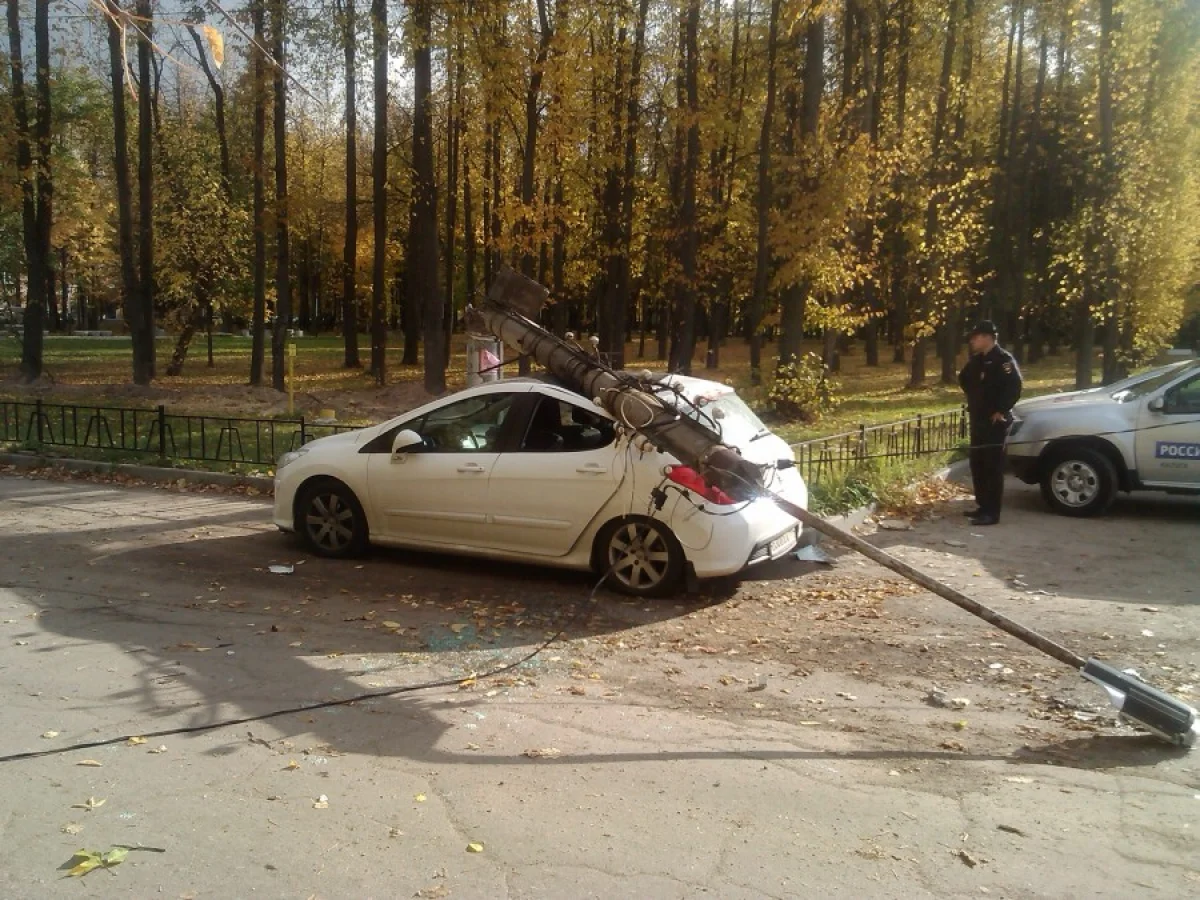 На улице Комсомольская роща 39 в 10:15 столб упал на автомобиль припаркованный на обочине. К счастью в данный момент в автомобиле никого не было. Обошлось без жертв, что не сказать о состоянии самого автомобиля.