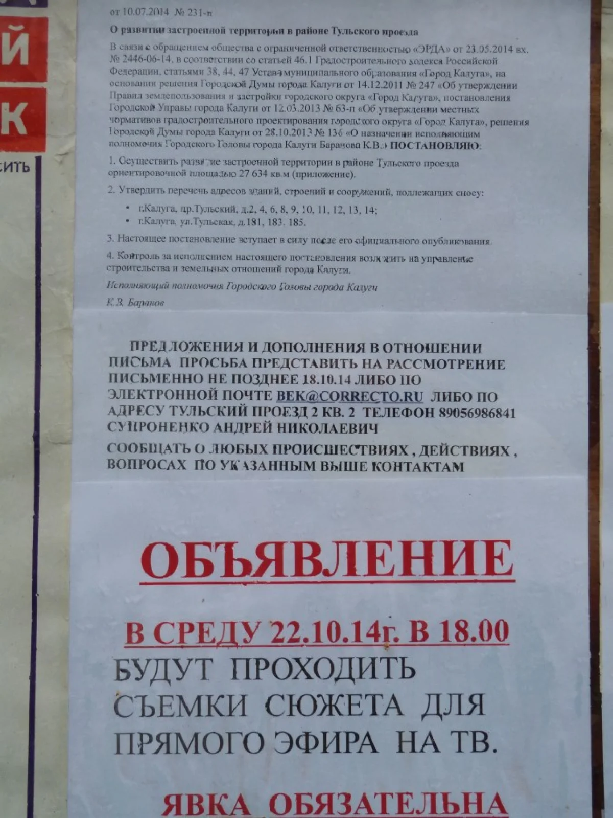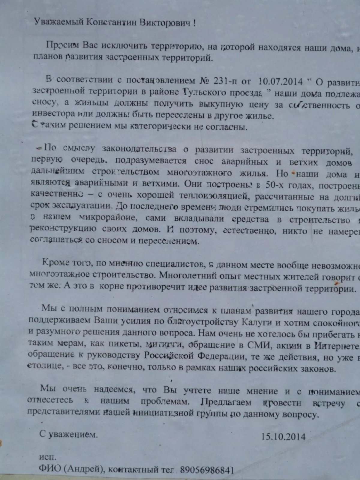 Жители Тульской улицы и проезда протестуют против сноса наших домов!!!