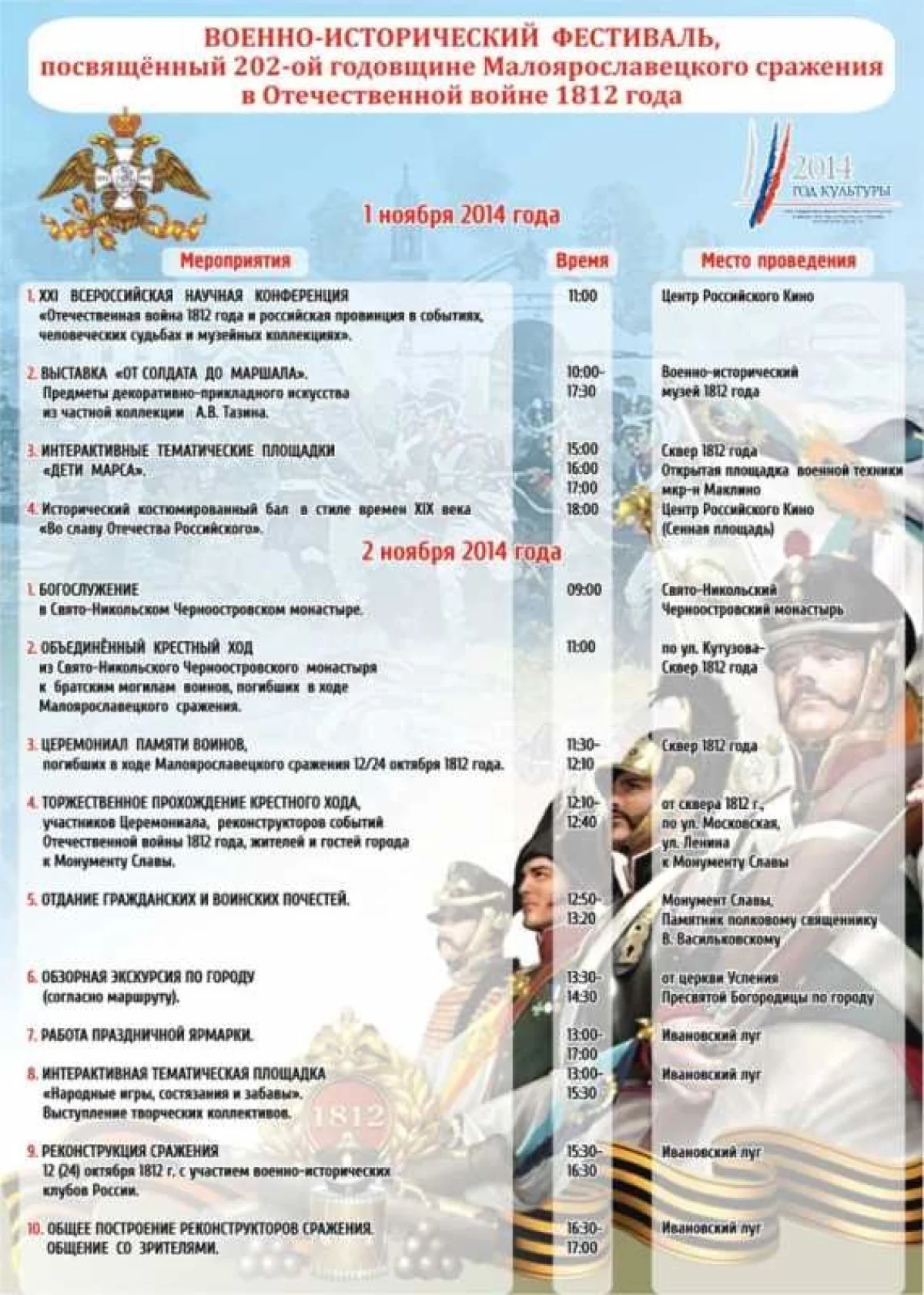 В приложенных к новости картинках - подробная программа на 1-2 ноября и план движения по городу. Источник картинок - газета Шанс (Малоярославец)