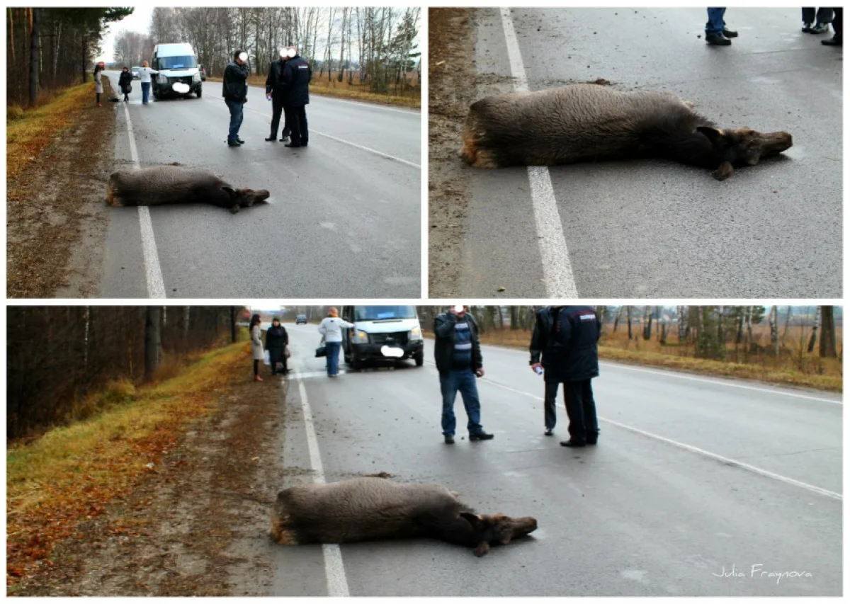 Сбитый лось на дороге