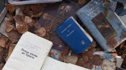 Cатано-свинорылы устроили нелегальную свалку из хрестианской литературы в д.Резвань