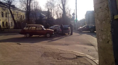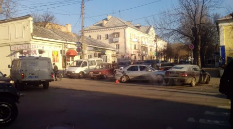ДТП с 3-мя машинами на перекрёстке ул. Пушкина - ул. Плеханова ( за Каменным мостом) Одна из машин полицейская буханка.