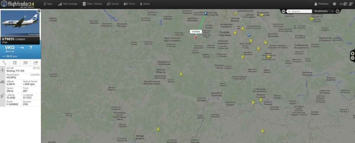 Наблюдал в интернете за полётом рейса из Внуково в сторону Калуги (картинка 1).