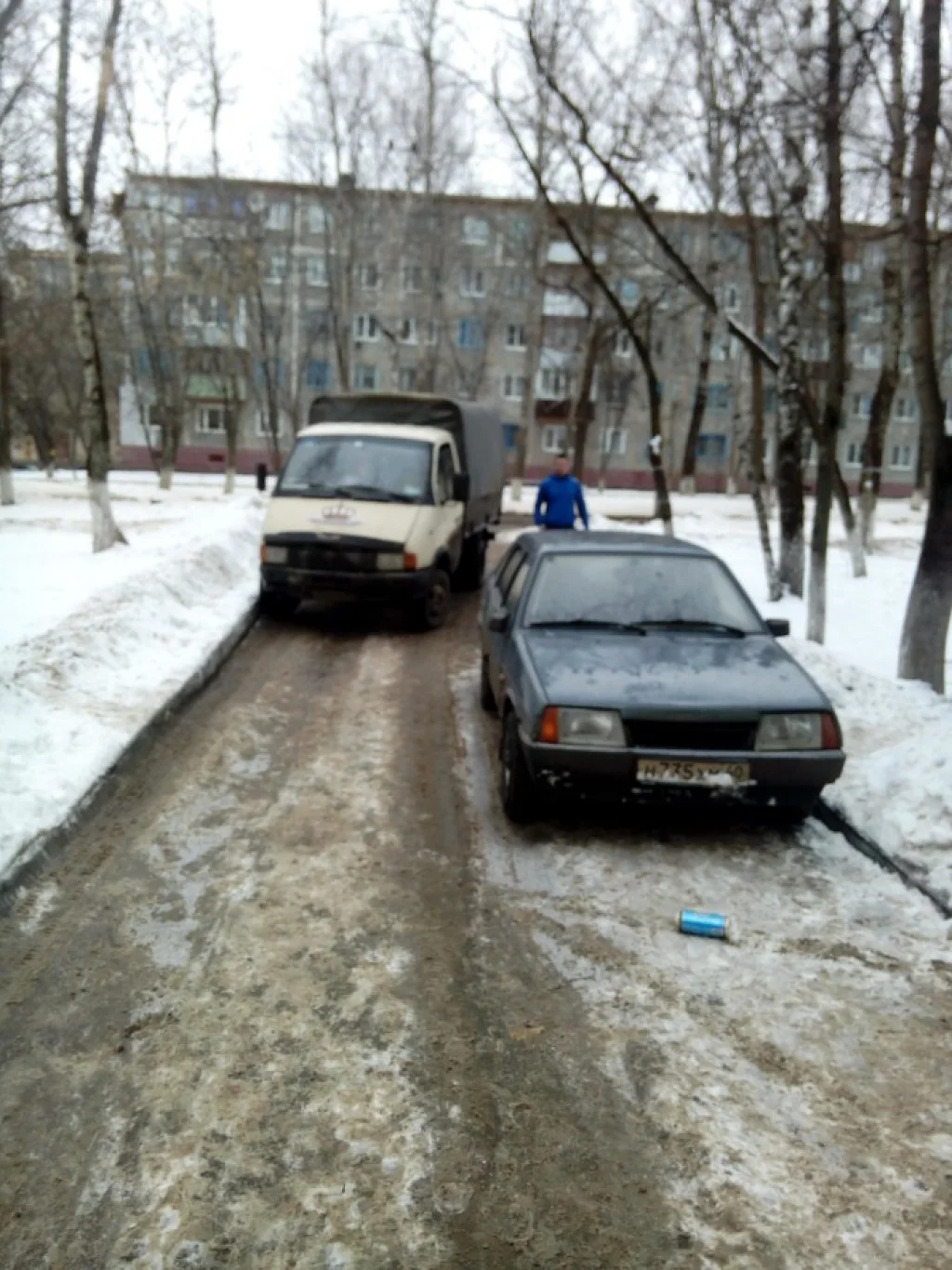 После недавней темы с паркингом впотную к дверям (http://www.kp40.ru/narnews/critic/30947/) тот же самый водятел поставил другое своё ведро практически перекрыв дорогу. На легковой в принципе проехать можно, а вот на джипах, фургонах и Газелях учитывая уклон невозможно. Более того сунувшуюся туда Газель пришлось буквально вытаскивать оттуда, чтобы её не стащило на припаркованную легковушку. Видимо данный водятел решил отомстить за предыдущий протокол ГИБДД вот таким вот образом, перекрыв подъезд к торговому складу. Самое интересное, что стоянка во дворе и практически все парковочные места были свободны. Особенно "умиляет" возмущение (даже начал активно фоткать) хозяина данного "ведра", что кто то сложил ему зеркало, хотя я не смогу при всём желании проехать в эту щель на "Спринтере",
