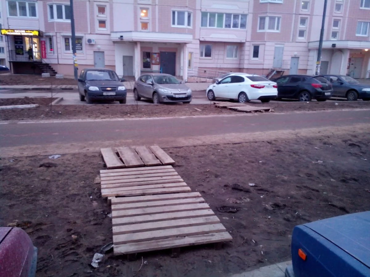 А ещё у нас нет перехода с тротуара к дороге (даже к пешеходному переходу) и к домам. Тротуар сам по себе.