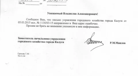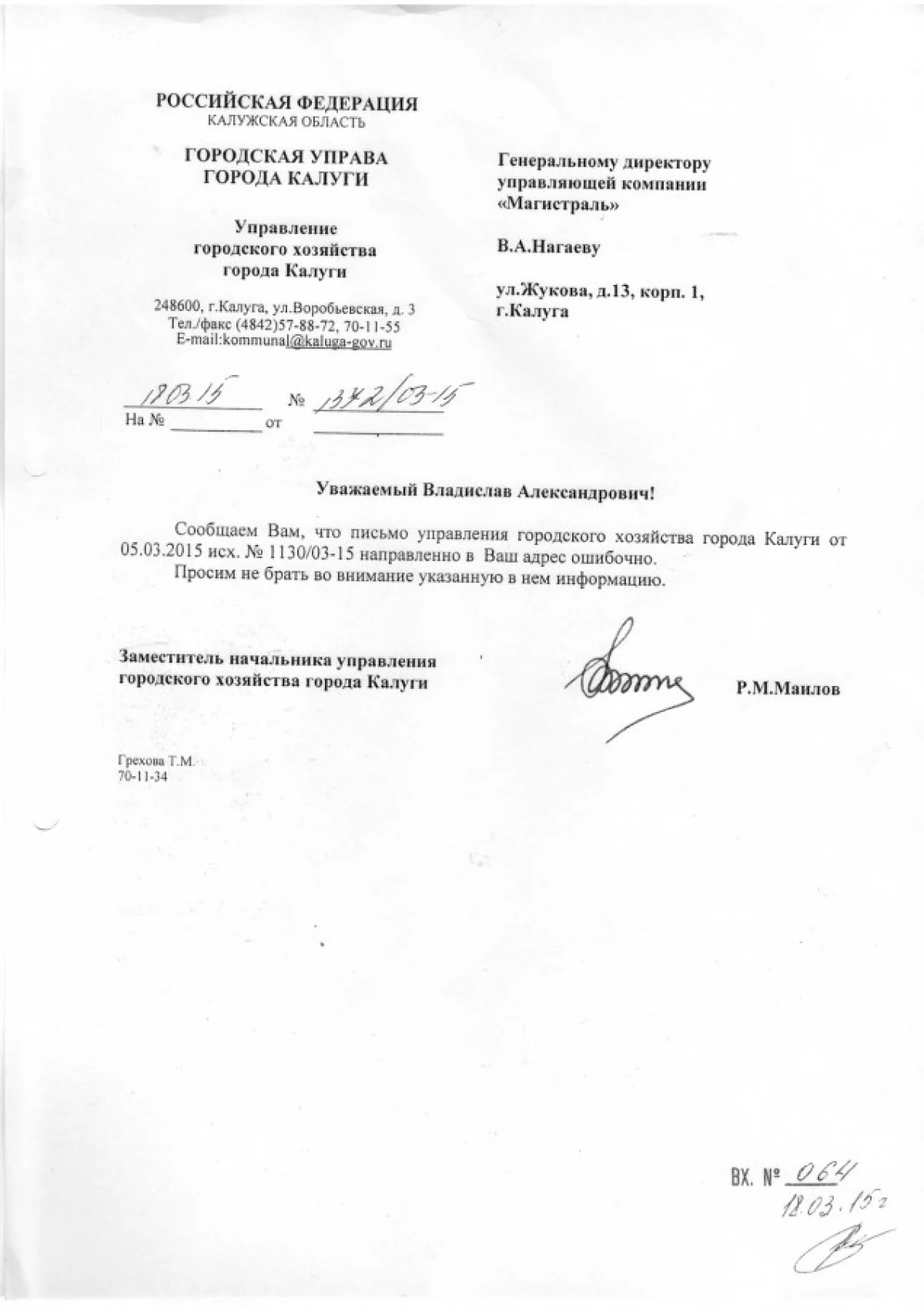 Но радовались мы не долго. Через 13 дней (почему именно через 13?) в нашу УК поступило еще одно письмо из УГХ, в котором они написали, что предыдущее письмо было выслано "ОШИБОЧНО!!!".