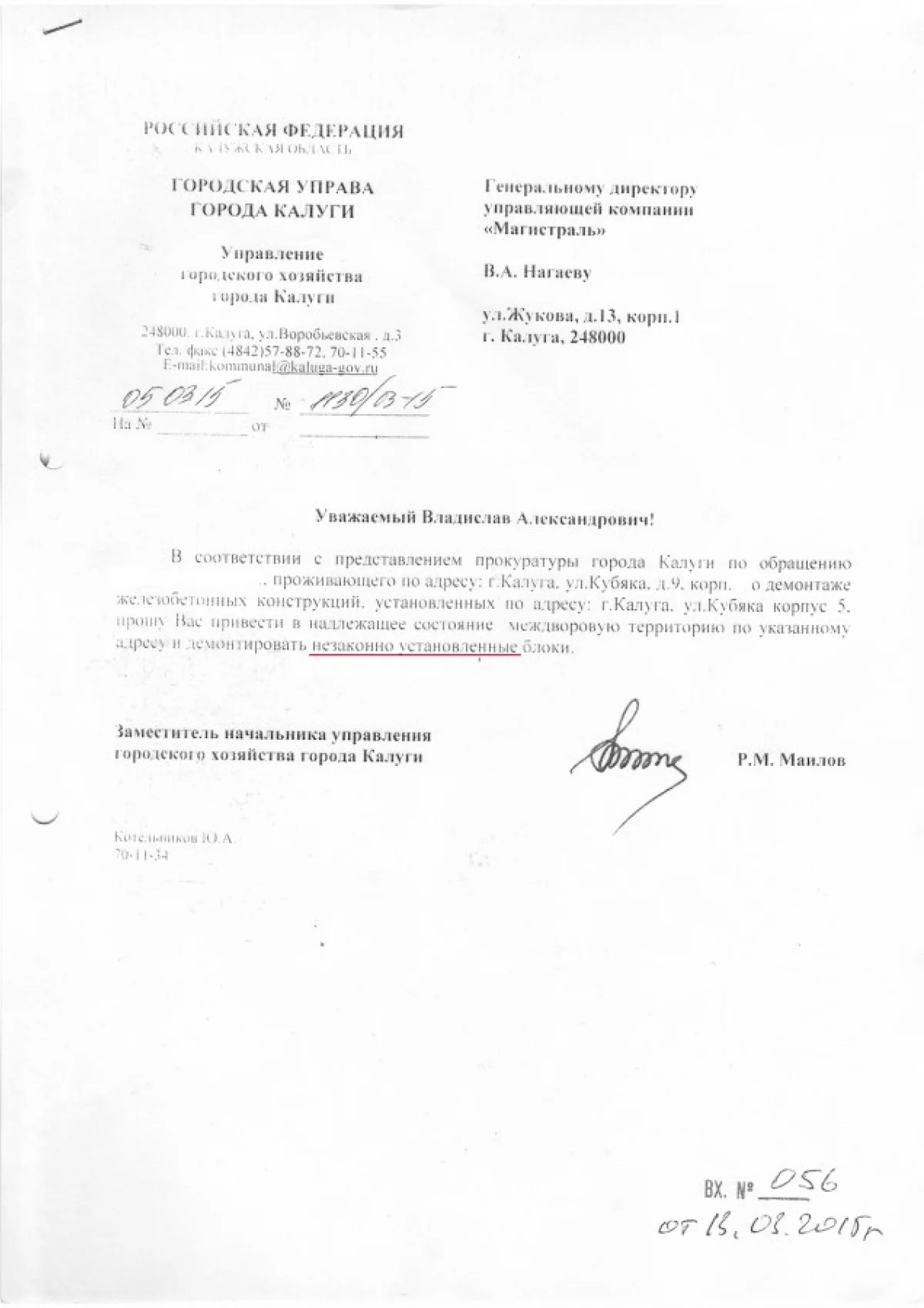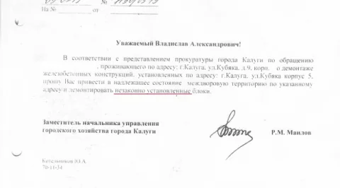 В один прекрасный день, а именно 5 марта 2015 года из УГХ в адрес наше УК на имя директора пришло письмо с указанием демонтажа блоков. Мы подумали, что случилось чудо.