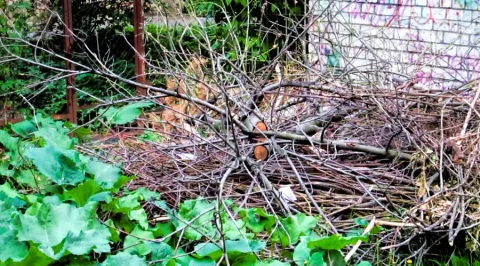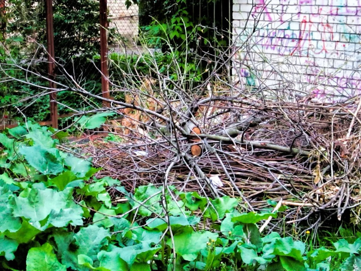 Джунгли-помойка во дворе дома номер 4 по ул. Баумана. Большая куча хвороста, оставшаяся после обрези кустарника и деревьев, вперемешку со всякой дрянью лежит рядом с трансформаторной будкой. За ней вход на территорию подстанции троллейбуса замаскировался. Лежит эта куча, подсыхает. А когда высохнет? Почти вплотную к ней припаркованы автомобили жильцов дома. Есть чему гореть. К сожалению, не знаю какое ведомство отвечает за данную территорию, но пора навести там порядок. До беды недалеко. Да и подход к трансформаторным будкам привести в порядок.