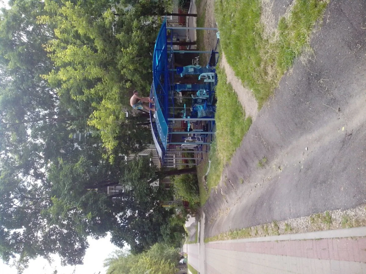 На улице Степана Разина д. 77 устанавливают спортивные тренажёры.