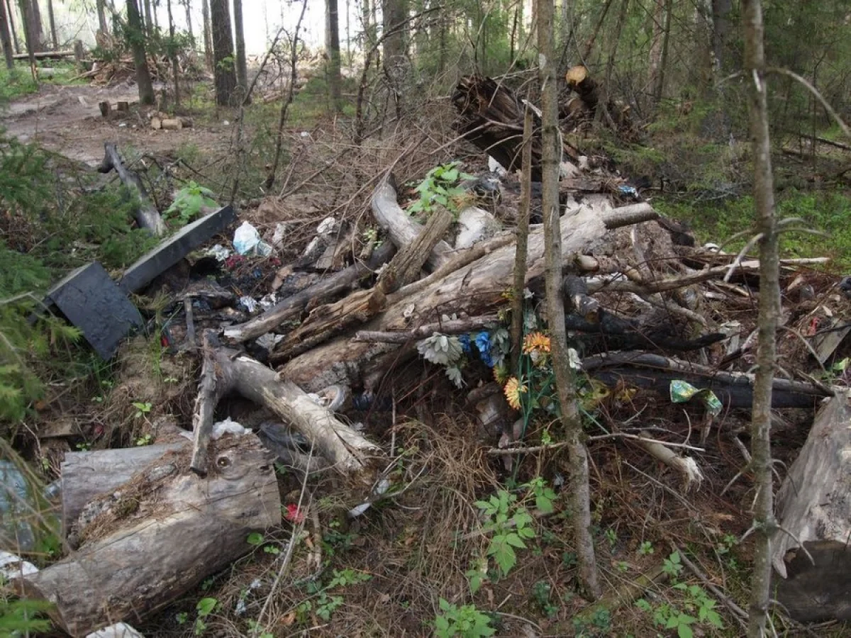 А вот ещё одна свинорыльская свалка, которую устроили, как минимум, сатанисты, вывезя отходы с ближайшего кладбища. Интересно, что там даже имеются каменные и железные памятники с фамилиями, а так же другие погребальные аксессуары.