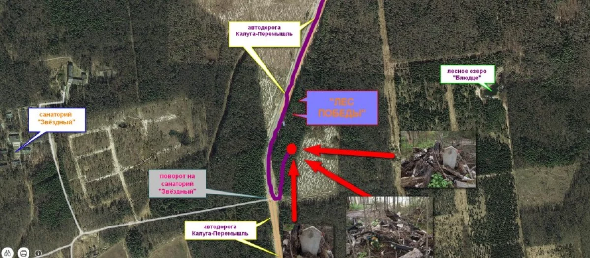 Находится всё это близ "Леса Победы", в небольшой лесополоске напротив поворота на санаторий "звёздный". К сожалению, спец.органы пока не могут её найти, хотя и получали обращения от неравнодушных граждан, а вот автосексуалы и другие свинорылы смогли найти и уже поместили рядом с этой интересной свалкой с кладбища ещё где-то 4 кучи, но там ничего интересного, только строительный мусор, мусорные пакеты, отходы от пищи из фастфуд-ресторанов и ещё что-то, никаких гробов или надгробий больше нет!