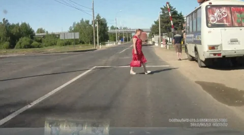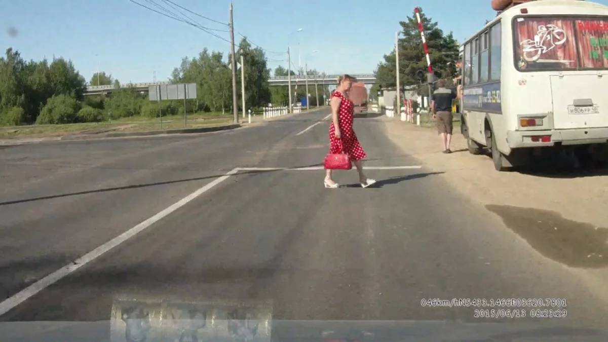 Скажите, а тут можно стоять и ПРИНИМАТЬ пассажиров? Или это пешеход неадекват? А если бы КАМАЗ ехал медленнее или она резче выскочила? Тогда что?